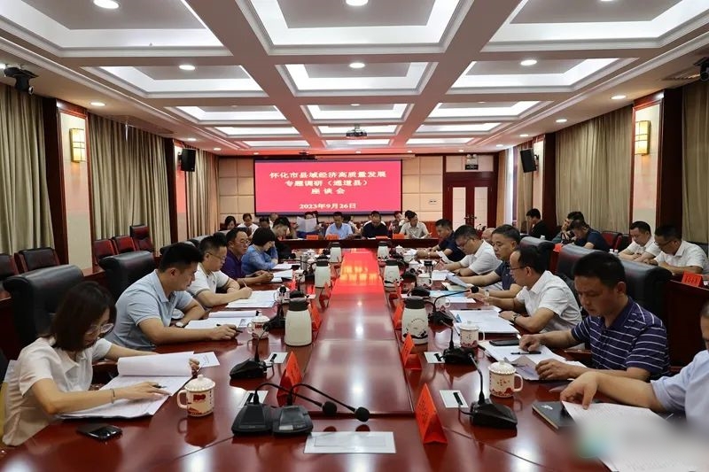 9月26日,怀化市政府副秘书长周厚群一行到我县专题调研县域经济高质量发展工作。县委书记毛运鸿出席座谈会,县委副书记、县委统战部部长张春松,副县长黄渊博及相关部门负责人参加。