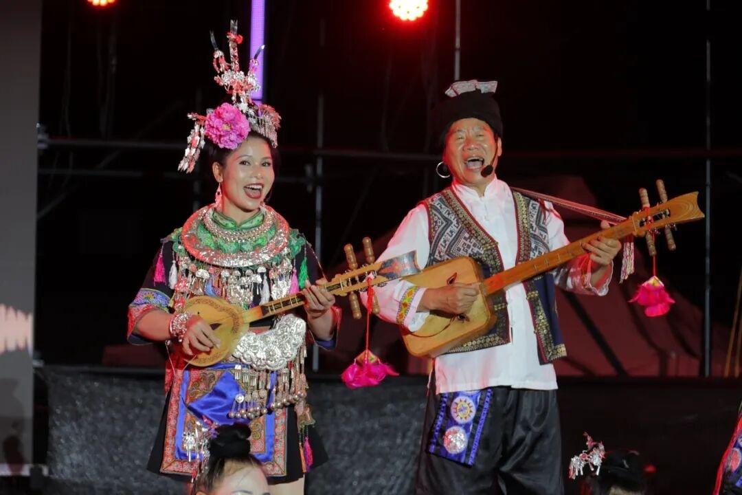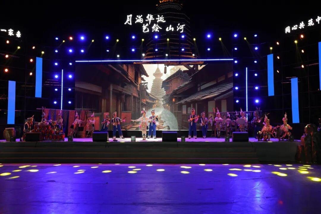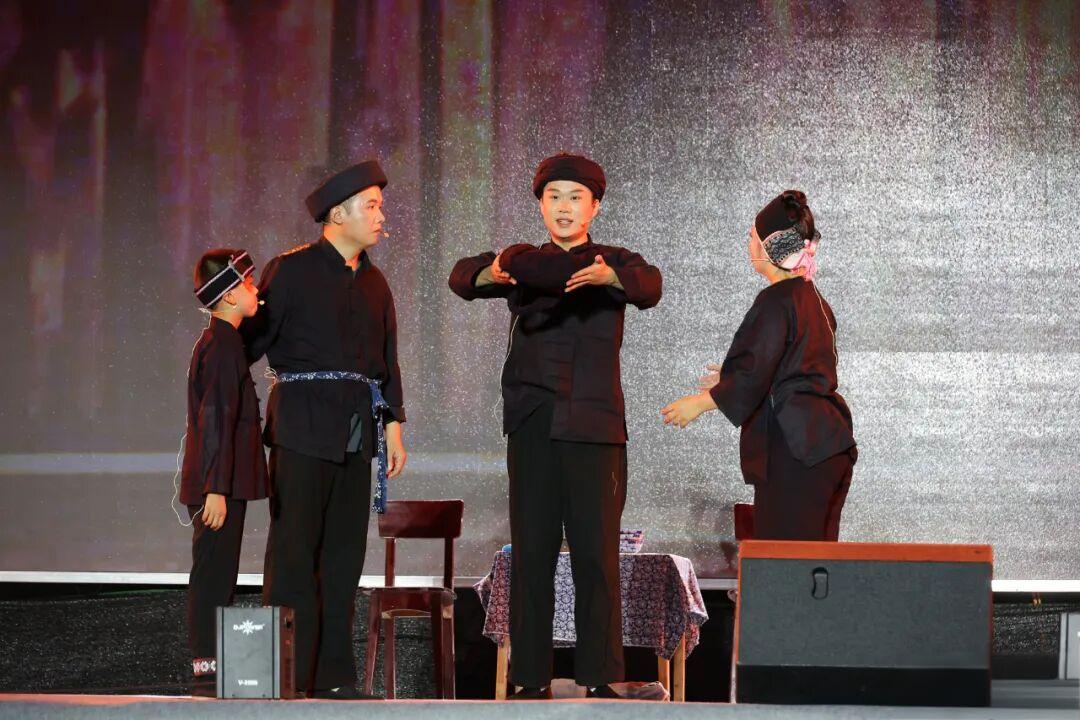 展演在充满童趣的舞蹈《侗家油茶娃》中拉开帷幕,孩子们活泼灵动的表演瞬间点燃了现场气氛。随后,歌舞《我来教你说侗话》、原创侗锦服饰情景秀《侗锦神韵》、表演唱《等你在侗寨》等节目轮番上演,演员们用创新的音乐形式和动人的歌舞表演,向观众展现了侗族文化的独特魅力。原创历史舞台剧《一担皮箩》与原创历史情景剧《忠魂不朽 盛世如愿》——小水战斗通过沉浸式艺术演绎重现军民鱼水情的动人故事与革命先烈的英勇壮举,观众仿佛穿越时空,亲历那段峥嵘岁月。
