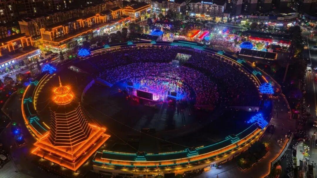 最后,全体演员与观众齐声高唱《我和我的祖国》《没有共产党就没有新中国》《爱我中华》等经典歌曲,激昂的歌声在广场上空久久回荡,为整场演出画上圆满句号。