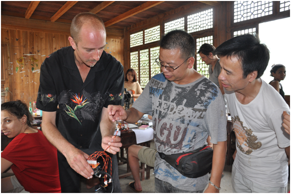 伦敦大学nick教授向侗乡群众演示声音感应装置