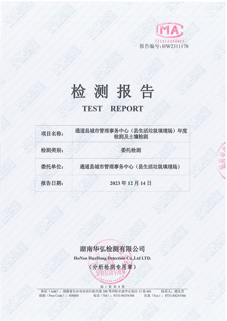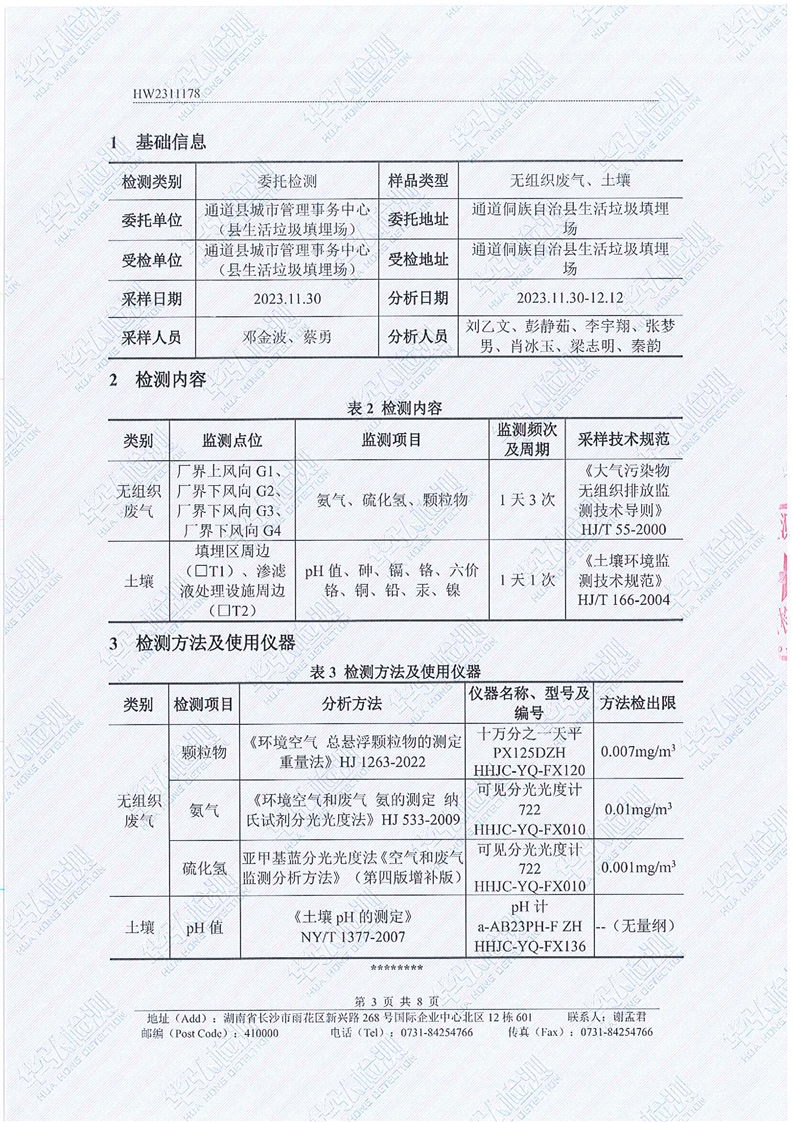 通道侗族自治县生活垃圾填埋场地无组织废气和土壤隐患排查报告
