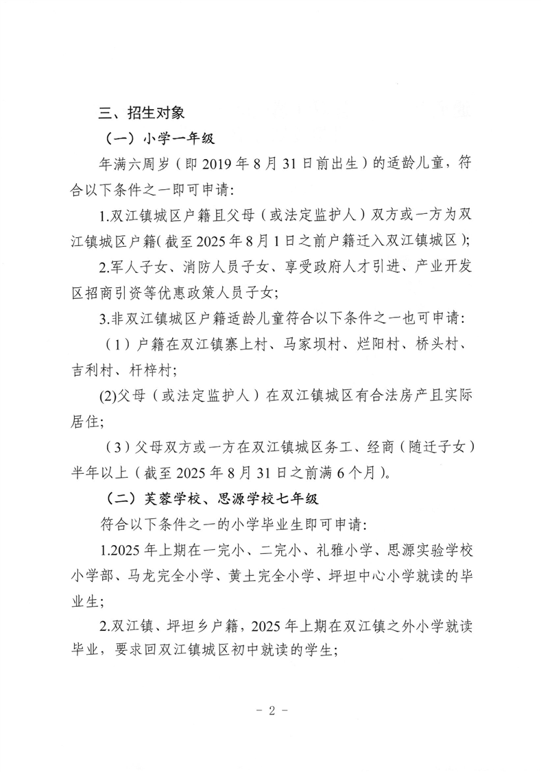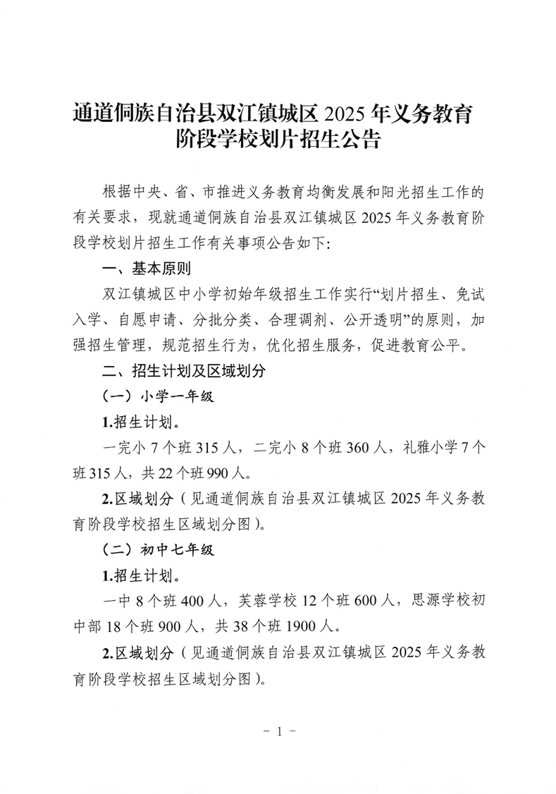 通道侗族自治县双江镇城区2025年义务教育阶段学校划片招生公告