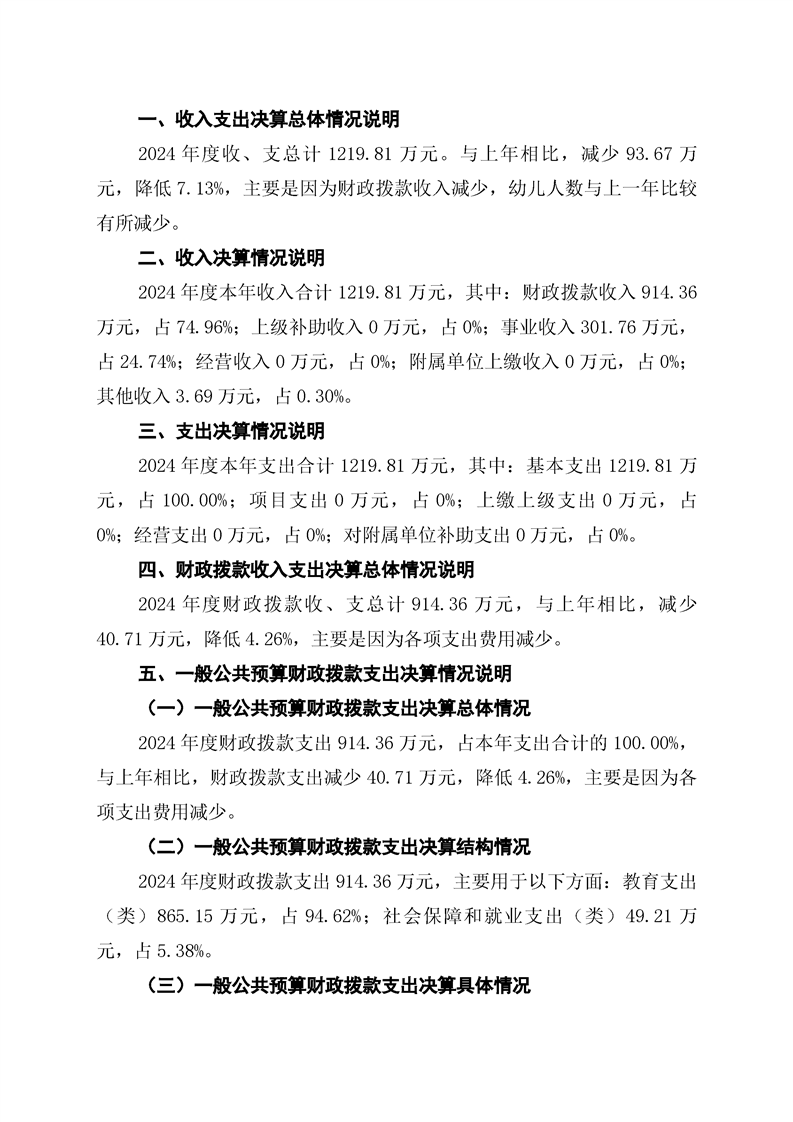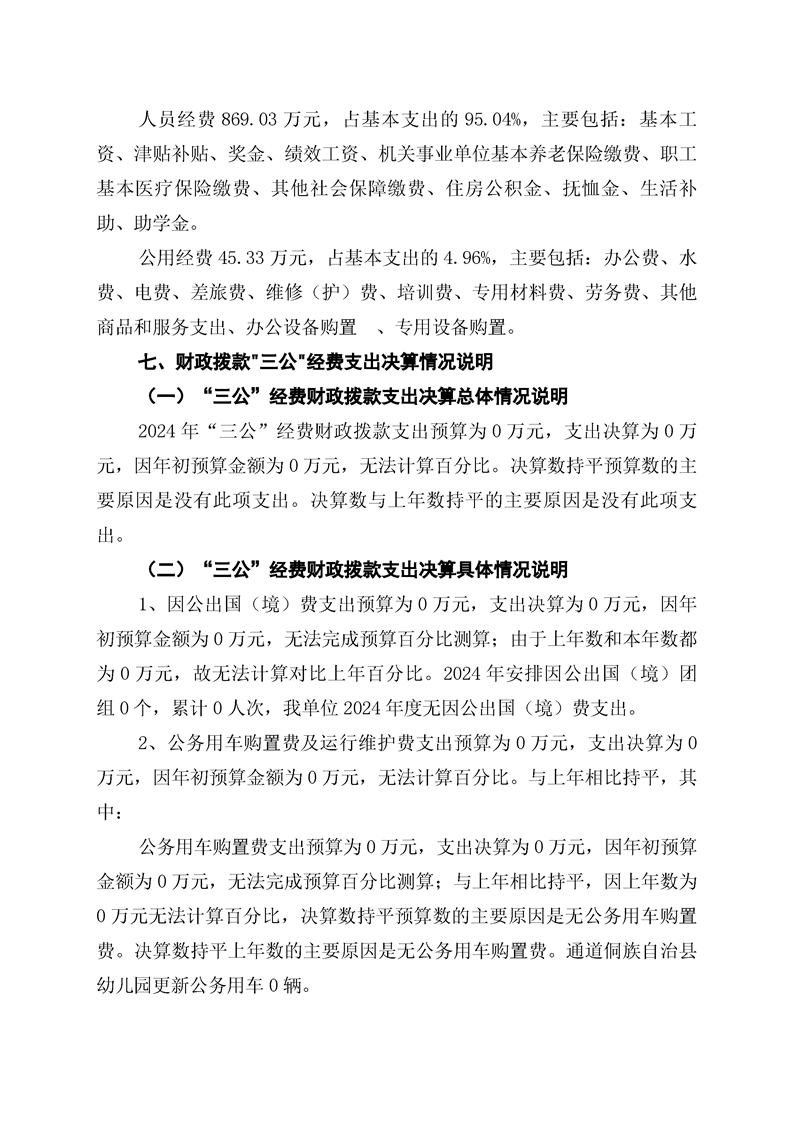 通道侗族自治县幼儿园2024年部门决算公开说明