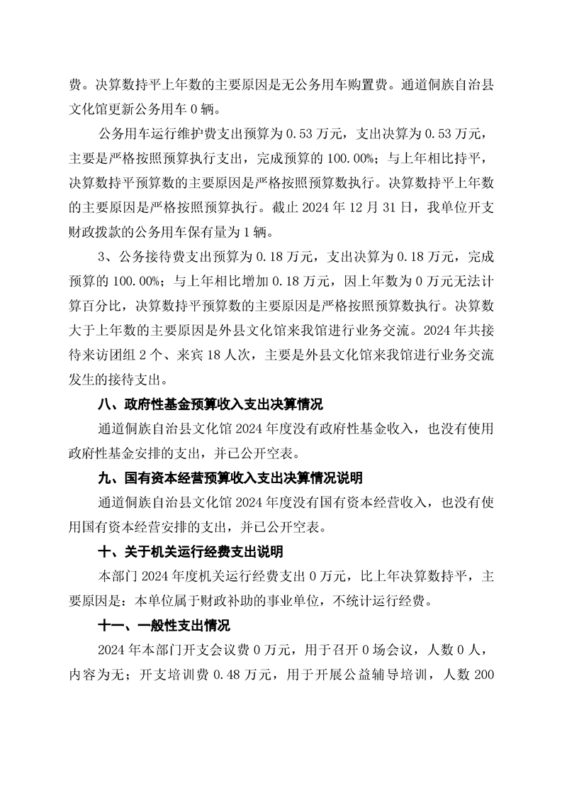 通道侗族自治县文化馆2024年部门决算公开说明