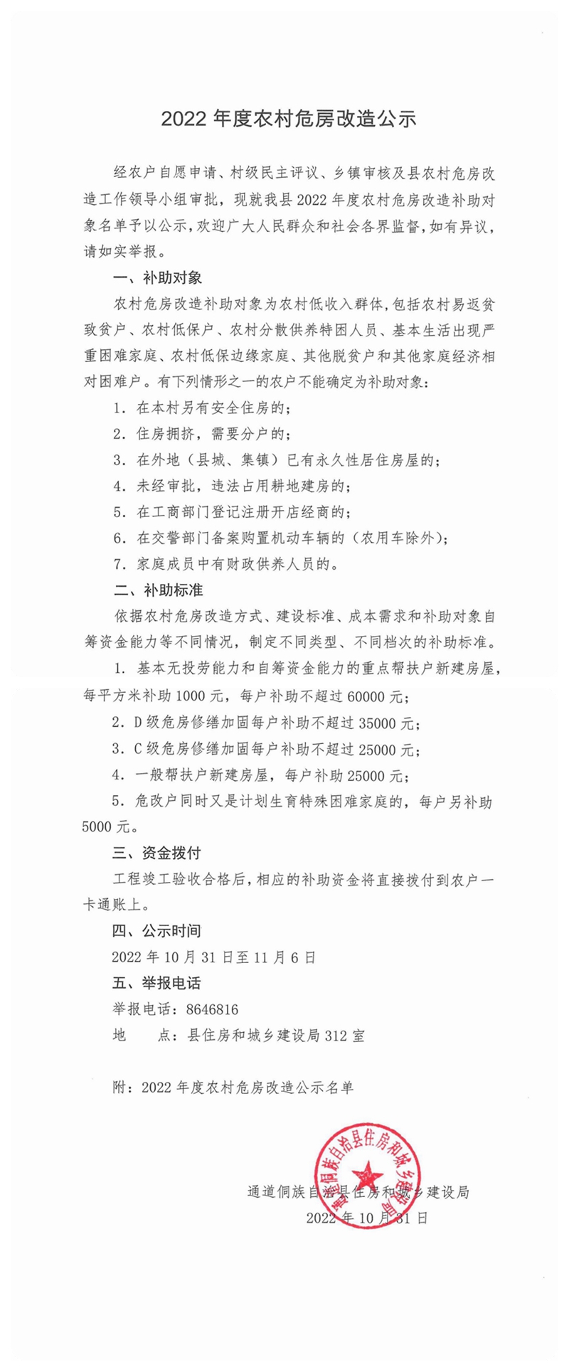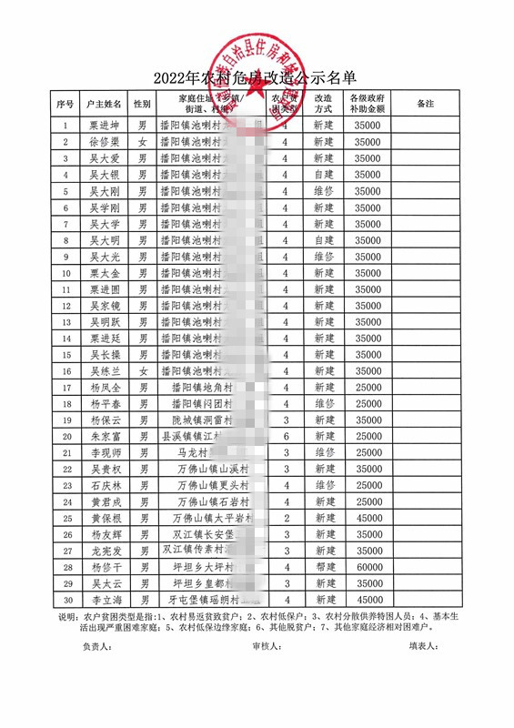 2022年度农村危房改造公示