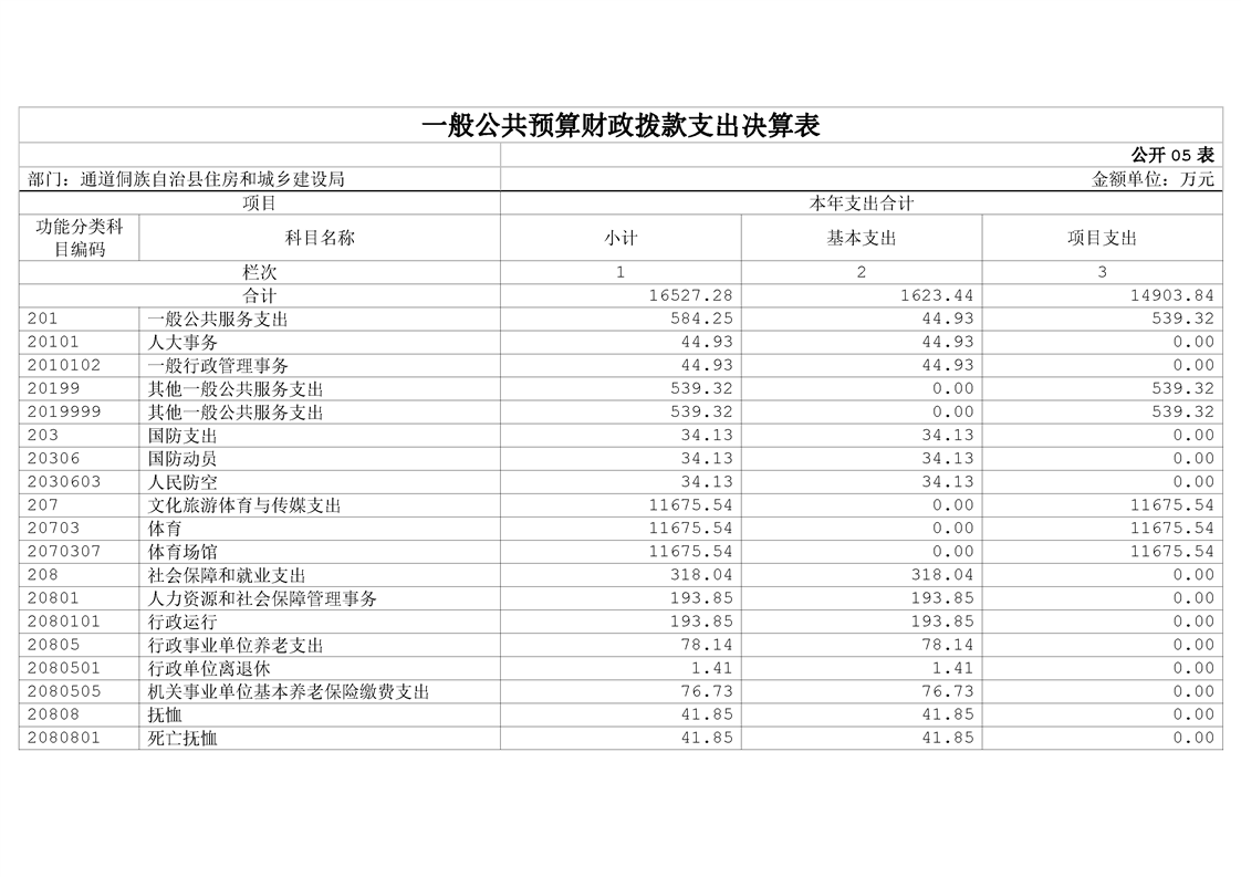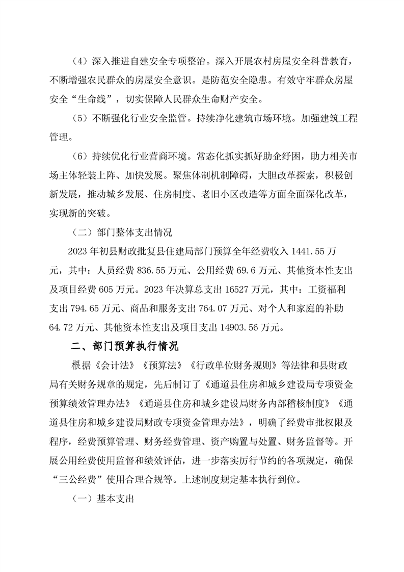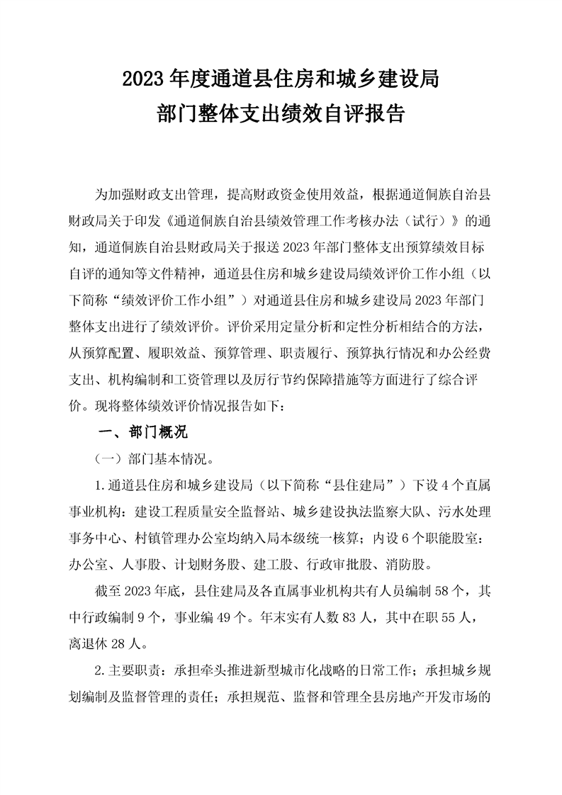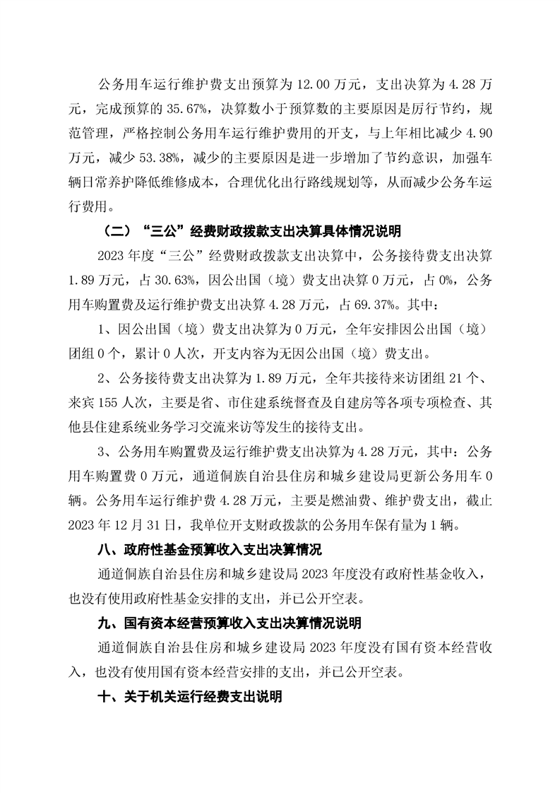 通道侗族自治县住房和城乡建设局2023年部门决算公开说明