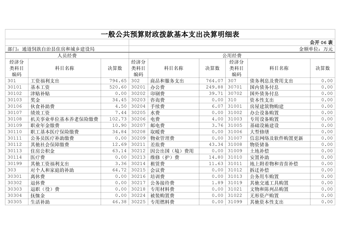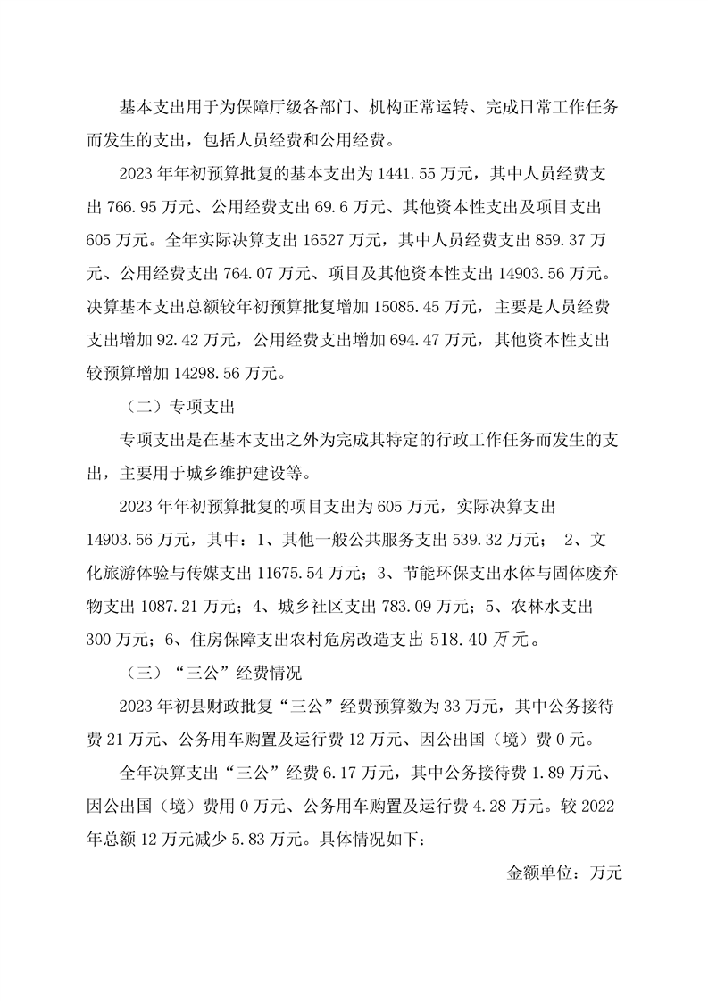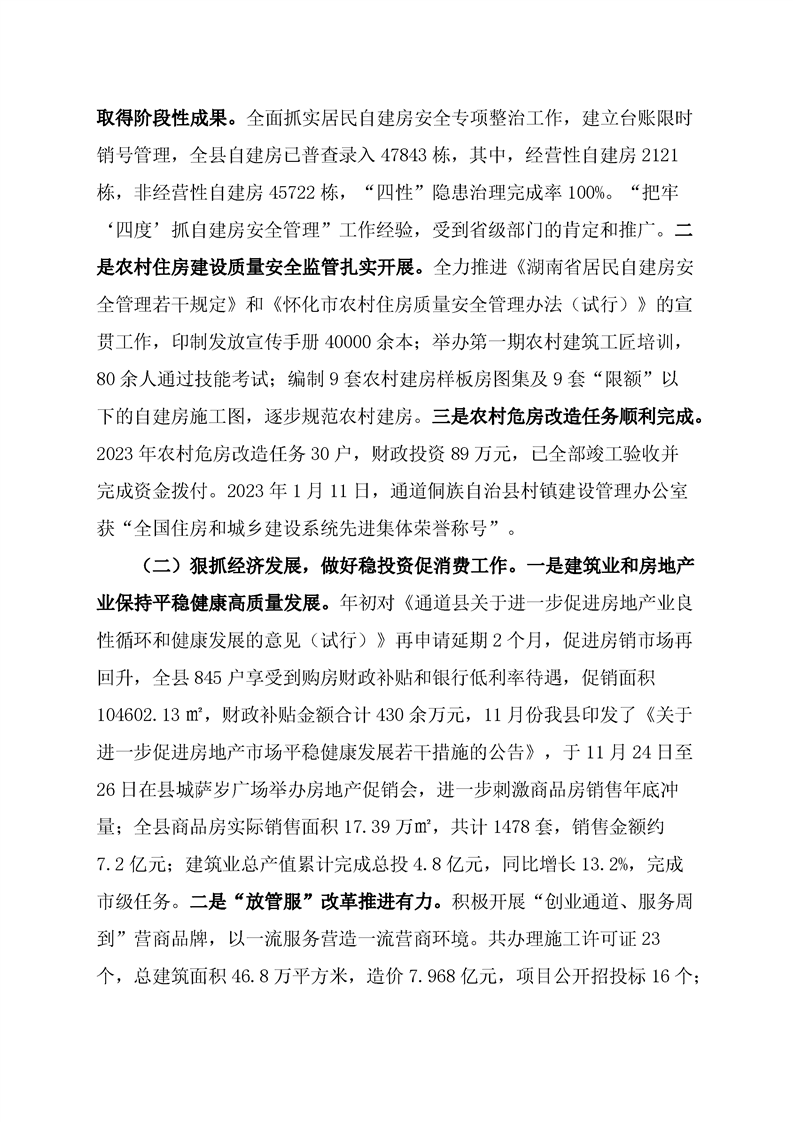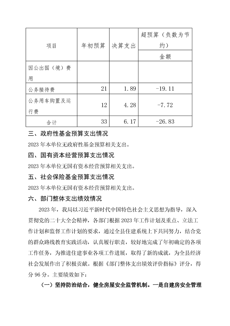通道侗族自治县住房和城乡建设局2023年部门决算公开说明
