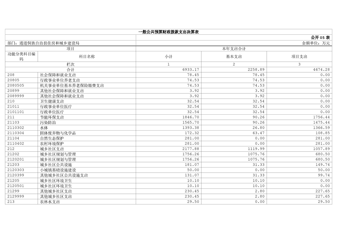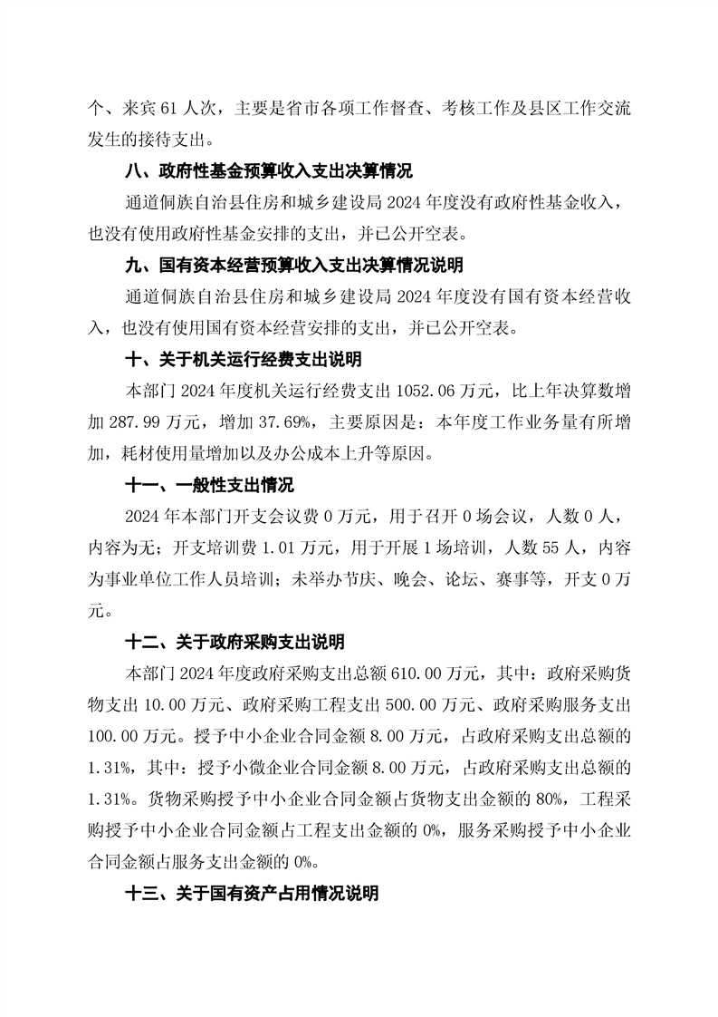 通道侗族自治县住房和城乡建设局2024年部门决算公开说明