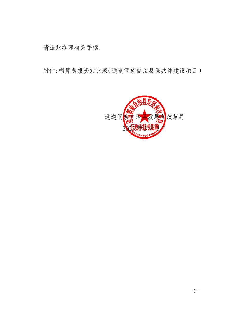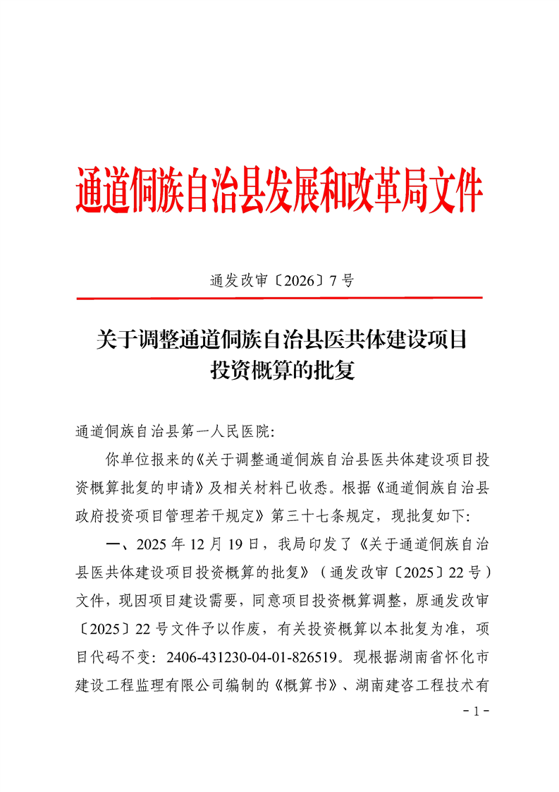 关于调整通道侗族自治县医共体建设项目投资概算的批复