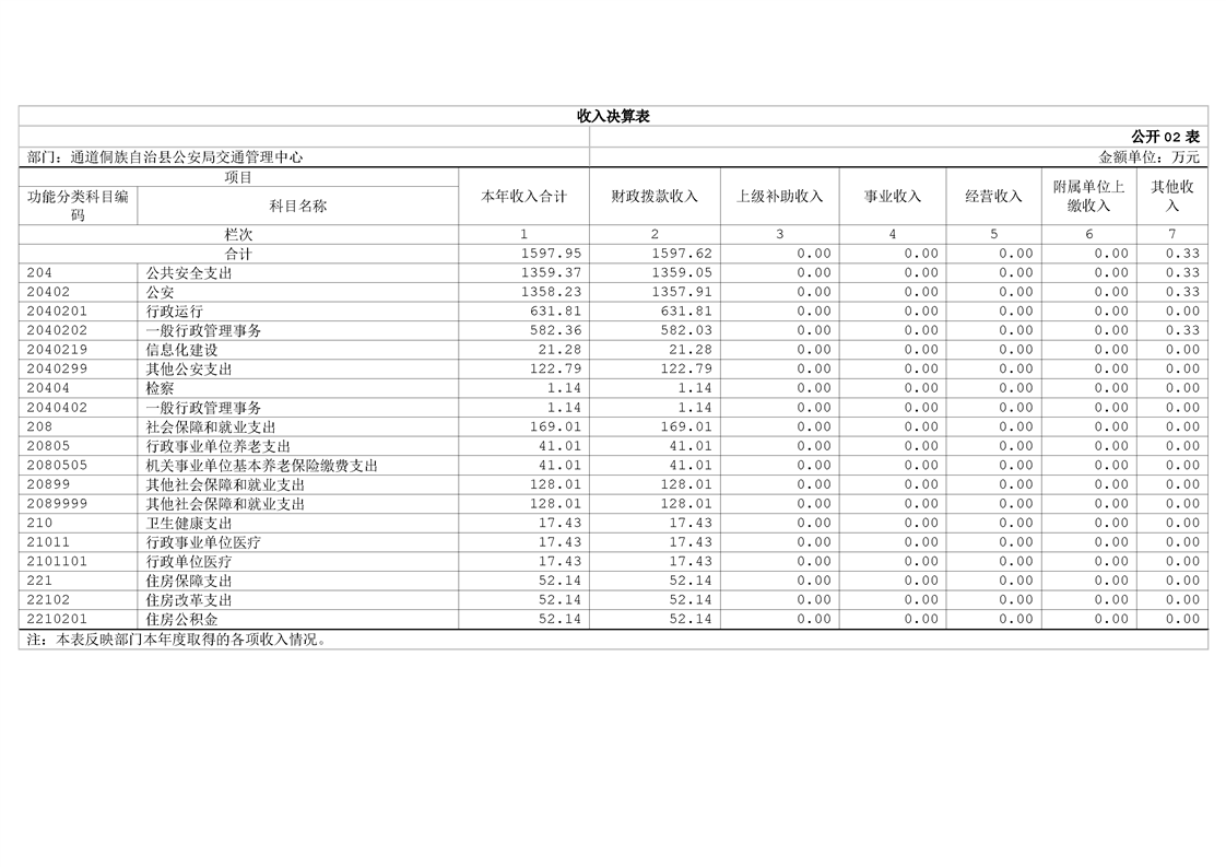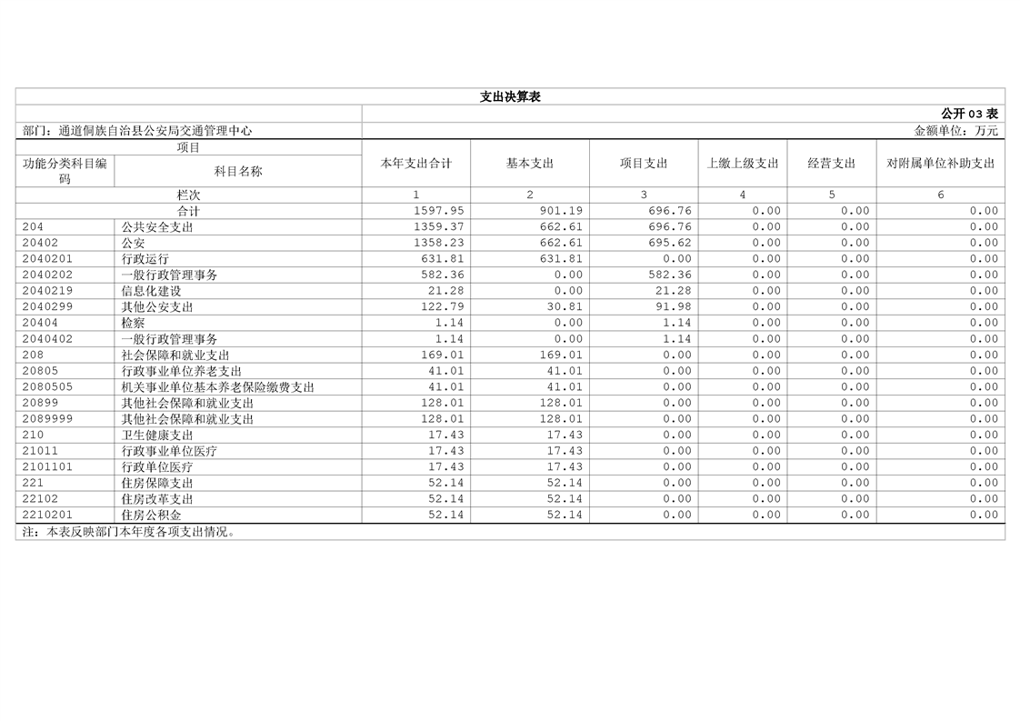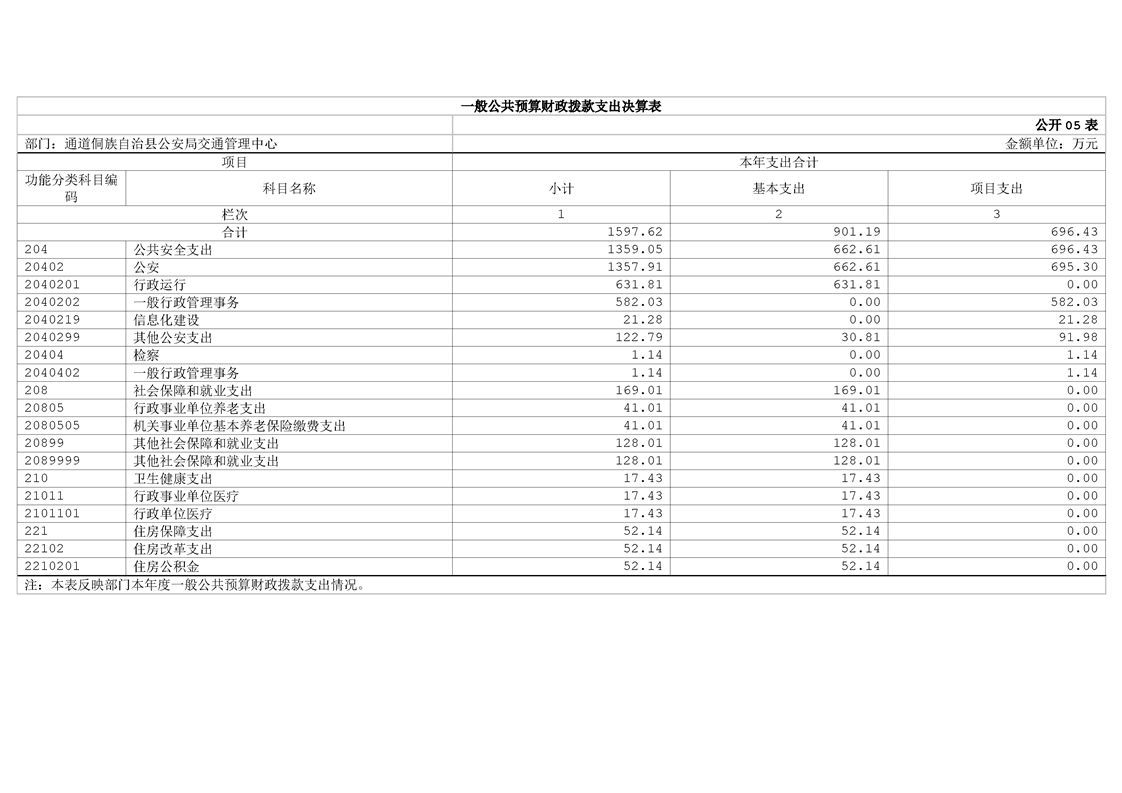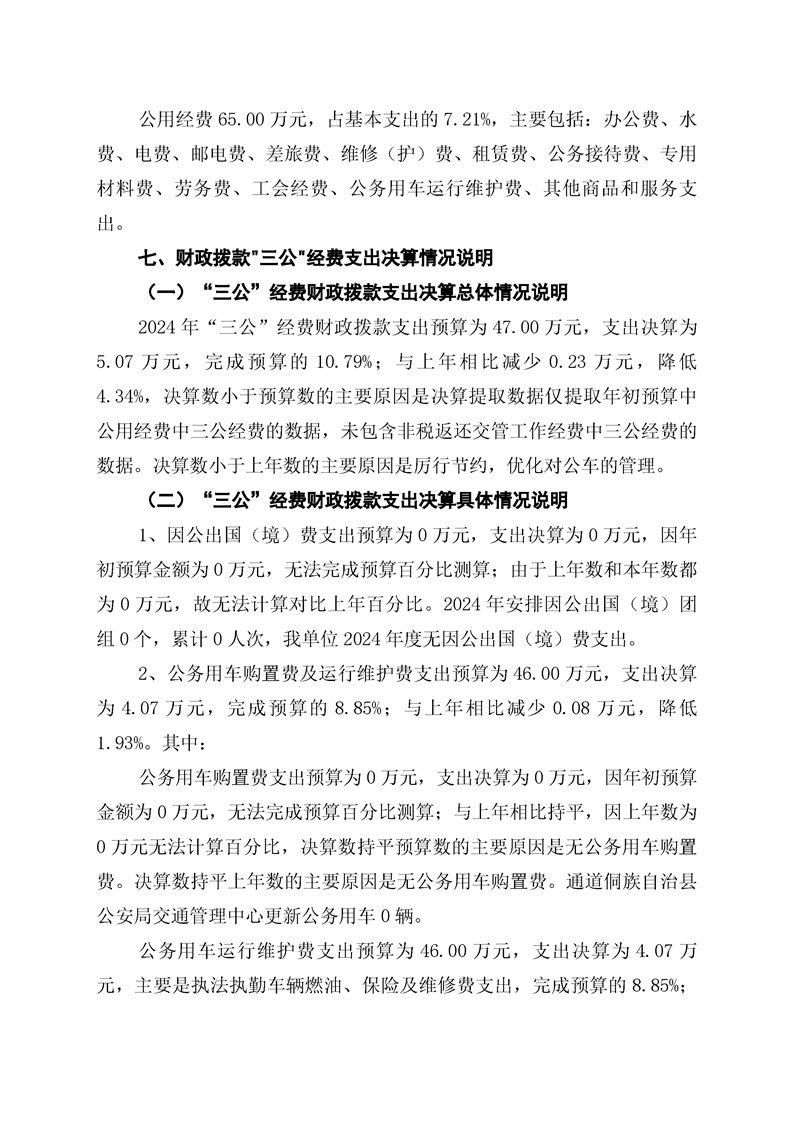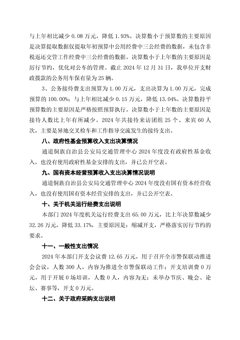 通道侗族自治县公安局交通管理中心2024年部门决算公开说明