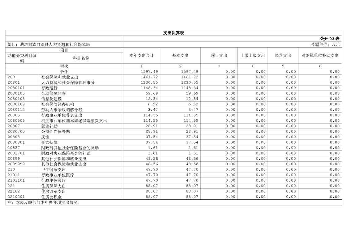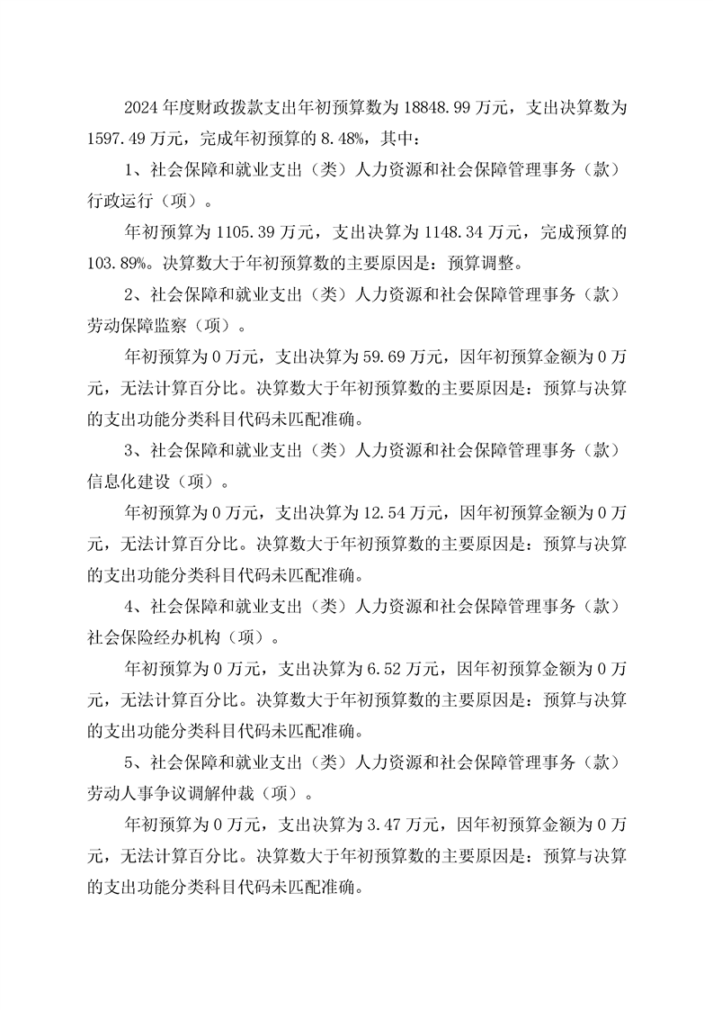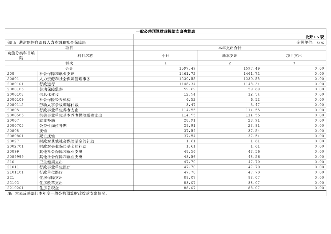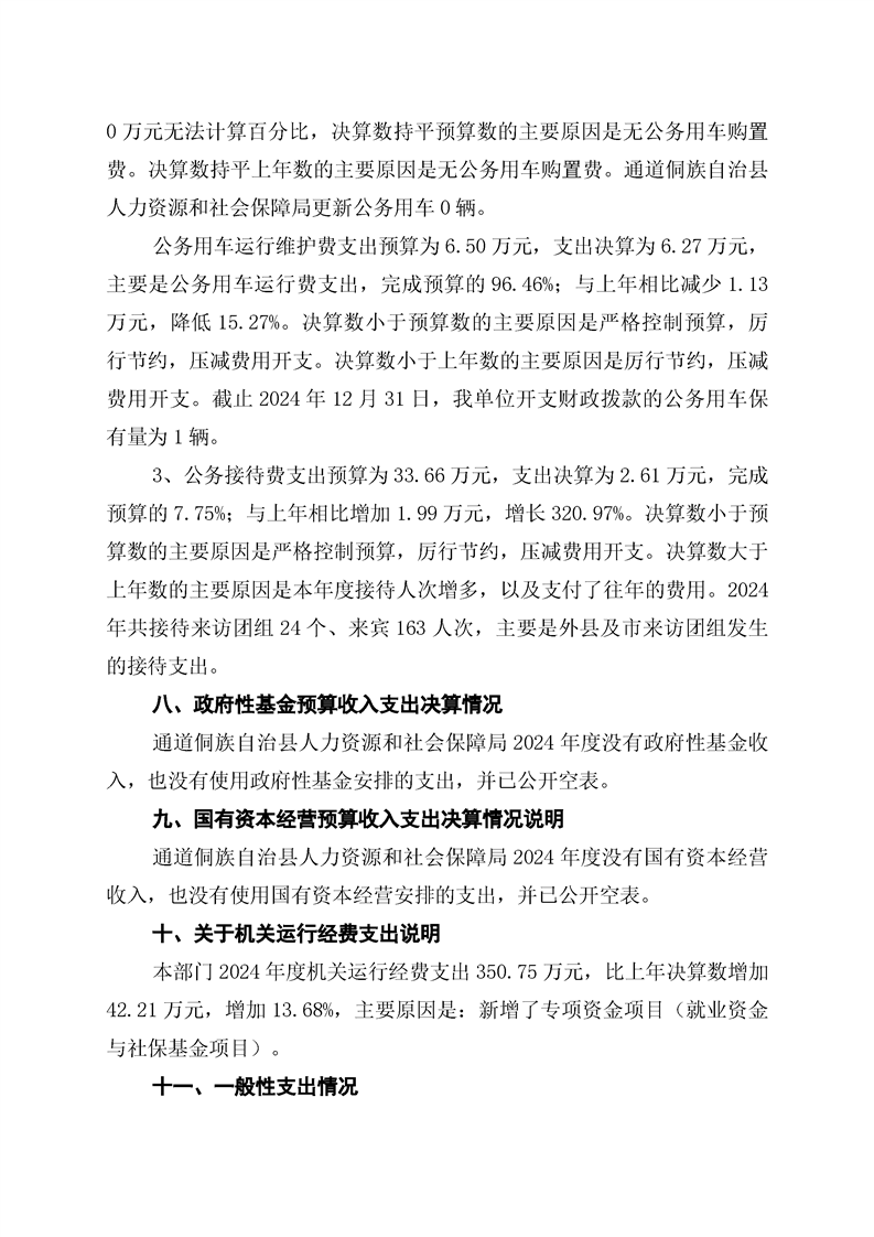 通道侗族自治县人力资源和社会保障局2024年部门决算公开说明