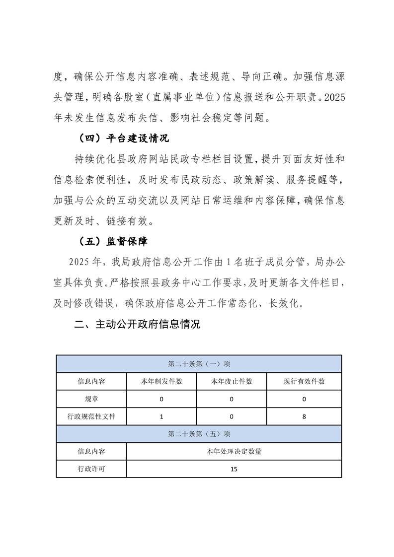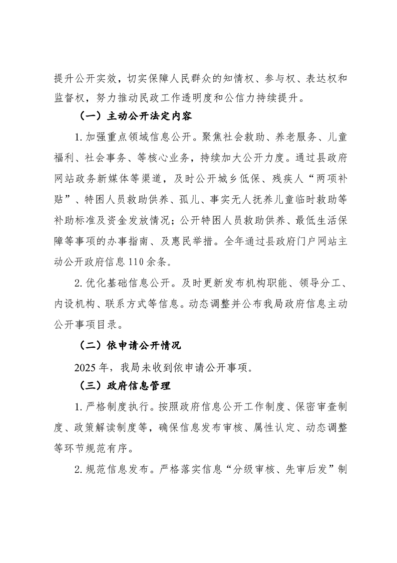 通道侗族自治县民政局2025年政府信息公开工作年度报告