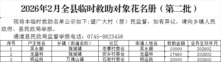 2026年2月全县临时救助对象花名册(第二批)