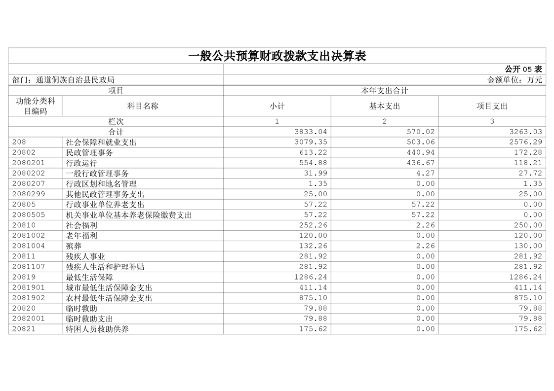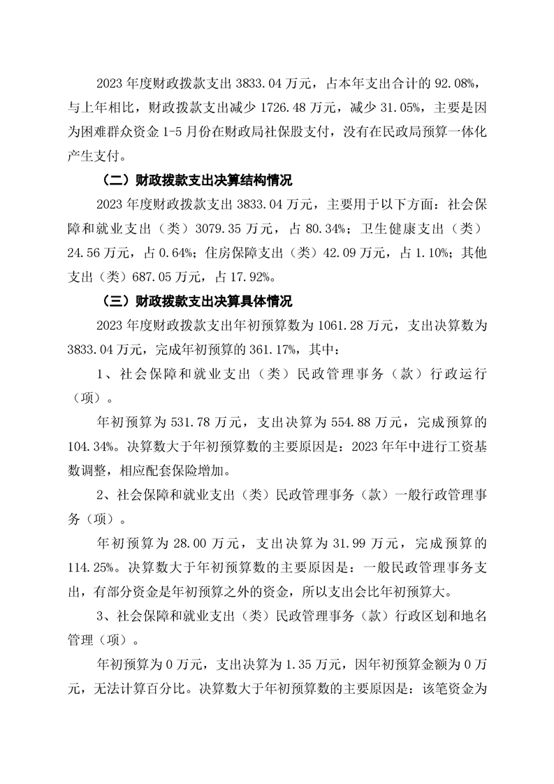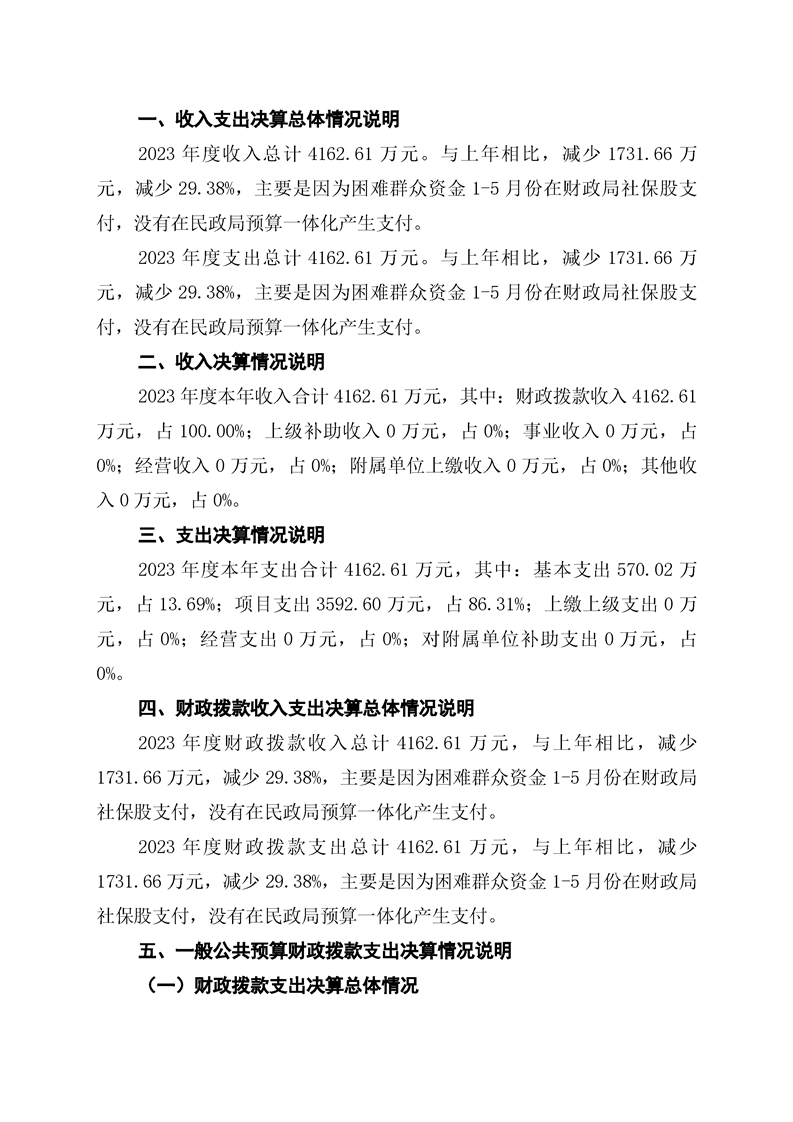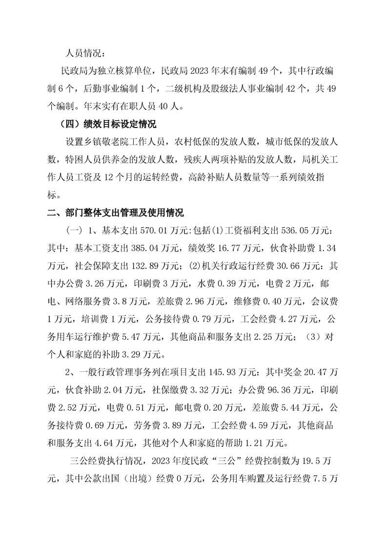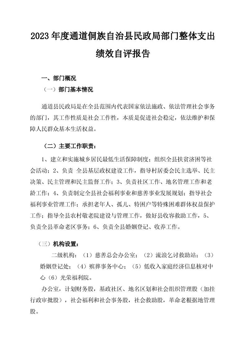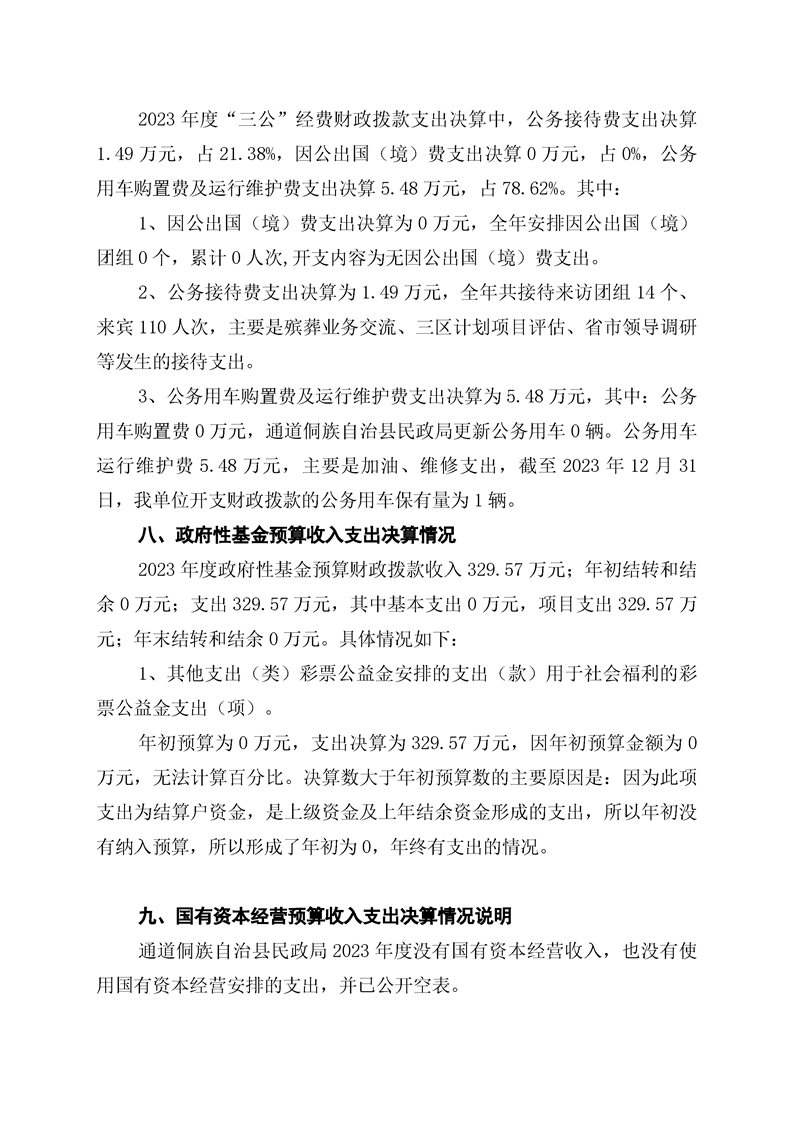 通道侗族自治县民政局2023年部门决算公开说明