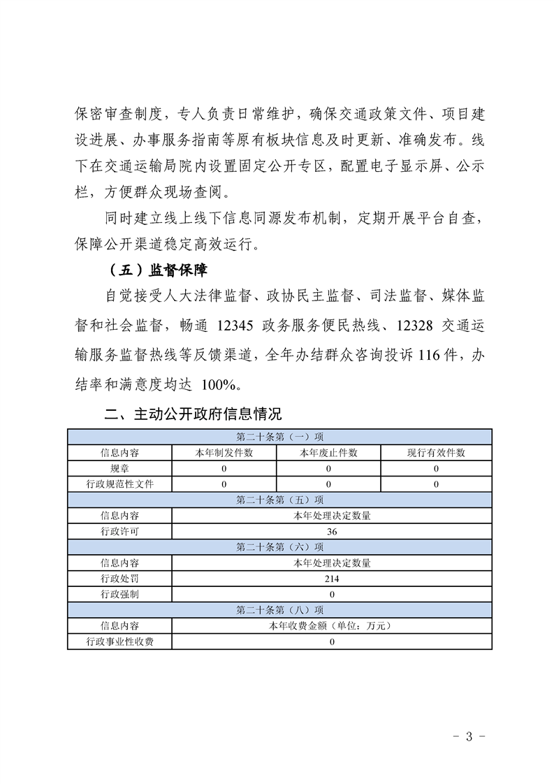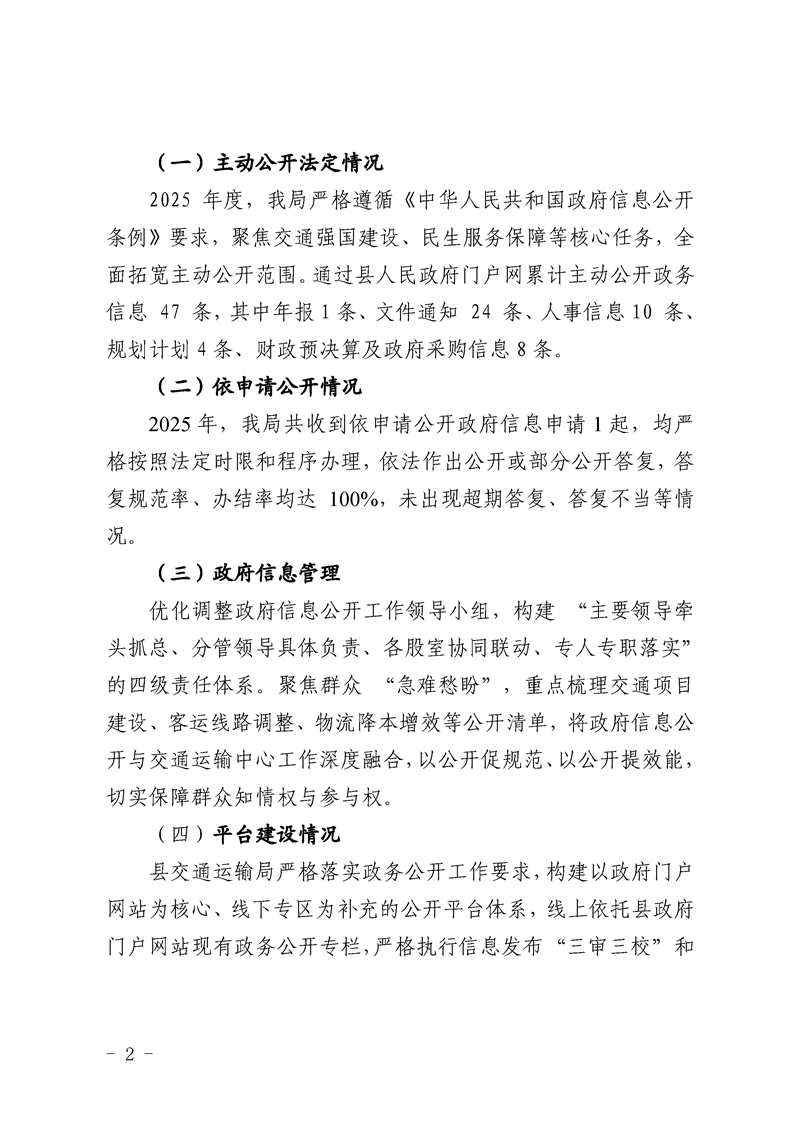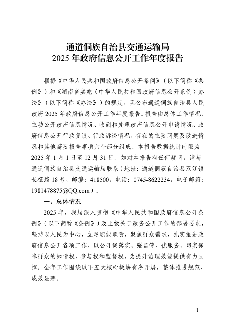 通道侗族自治县交通运输局2025年政府信息公开工作年度报告