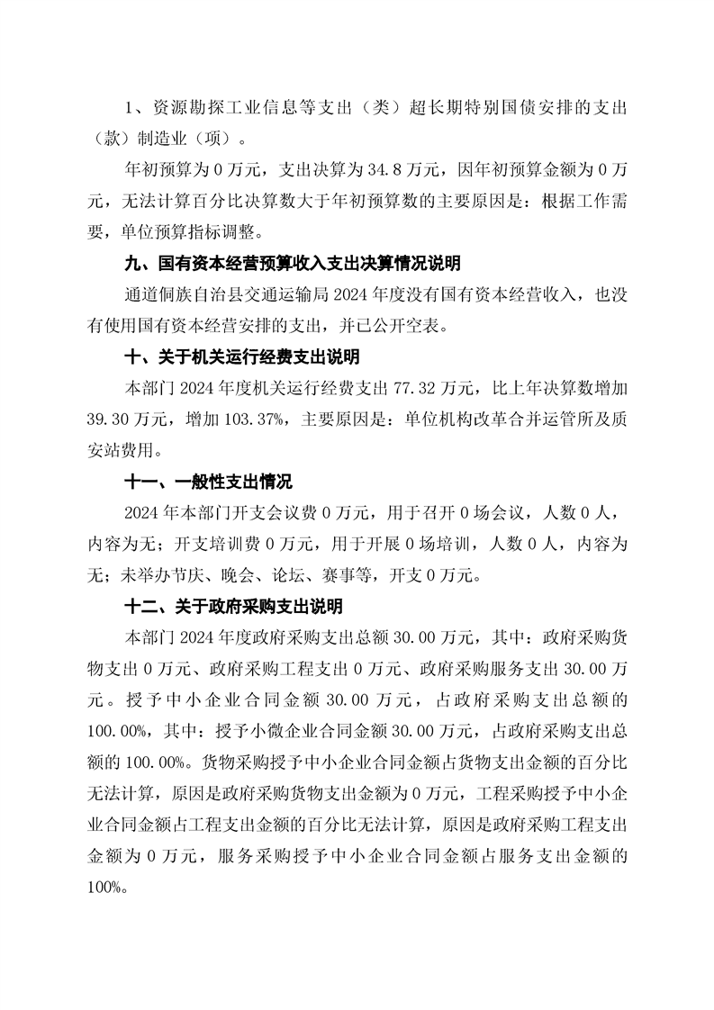 通道侗族自治县交通运输局2024年部门决算公开说明