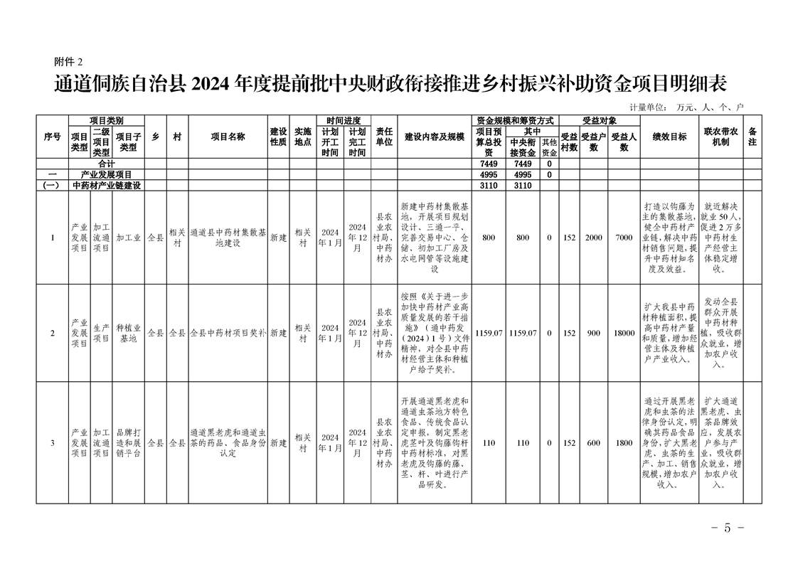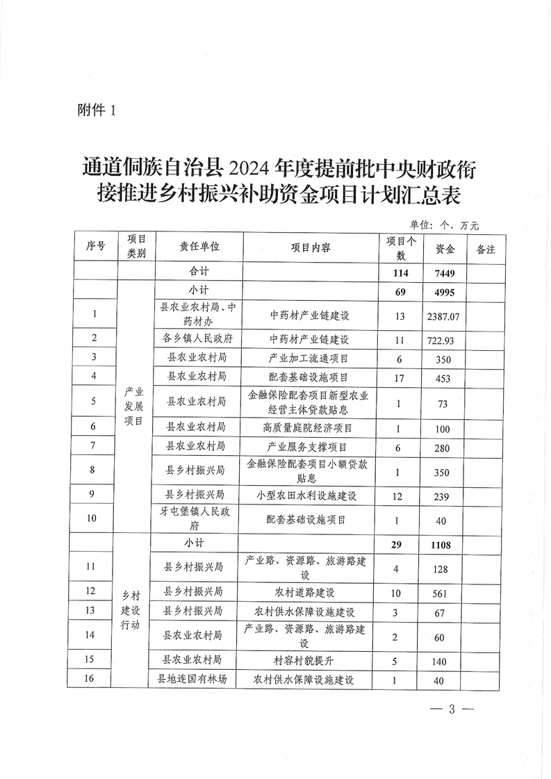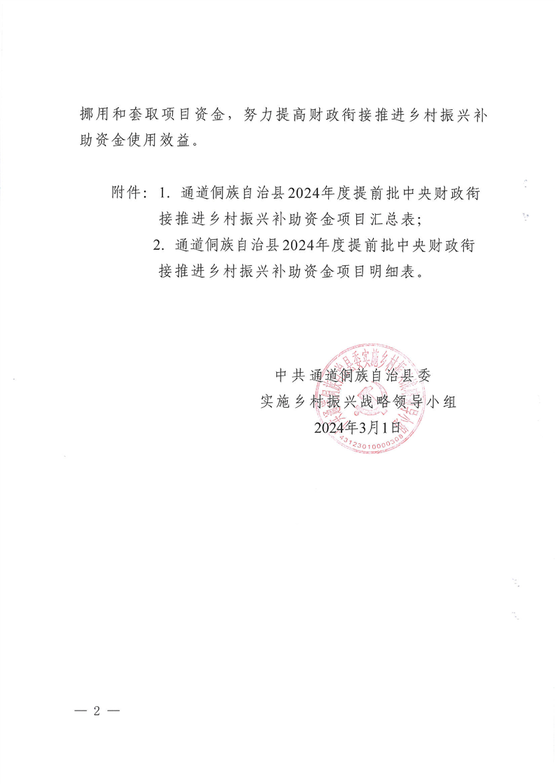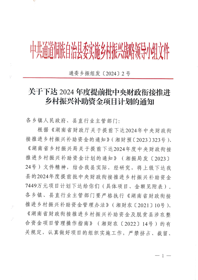 关于下达2024年度提前批中央财政衔接推进乡村振兴补助资金项目计划的通知