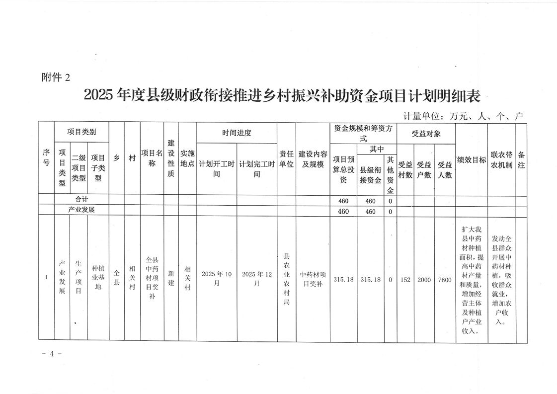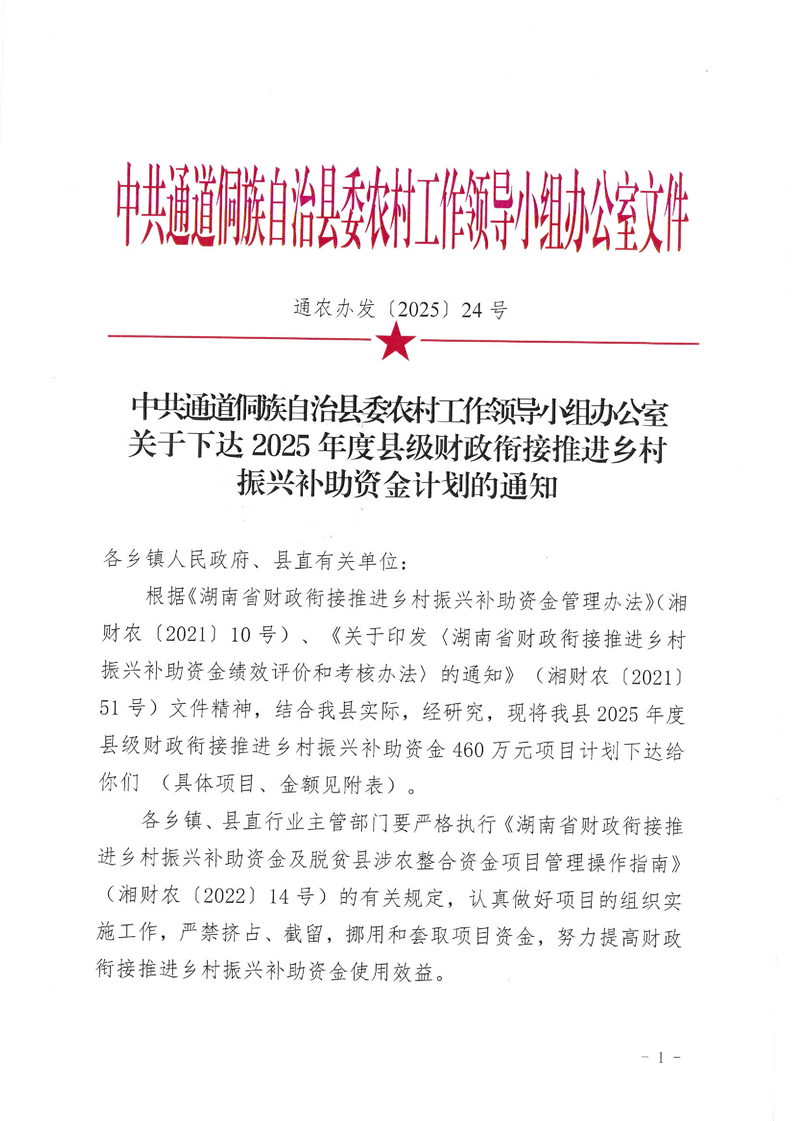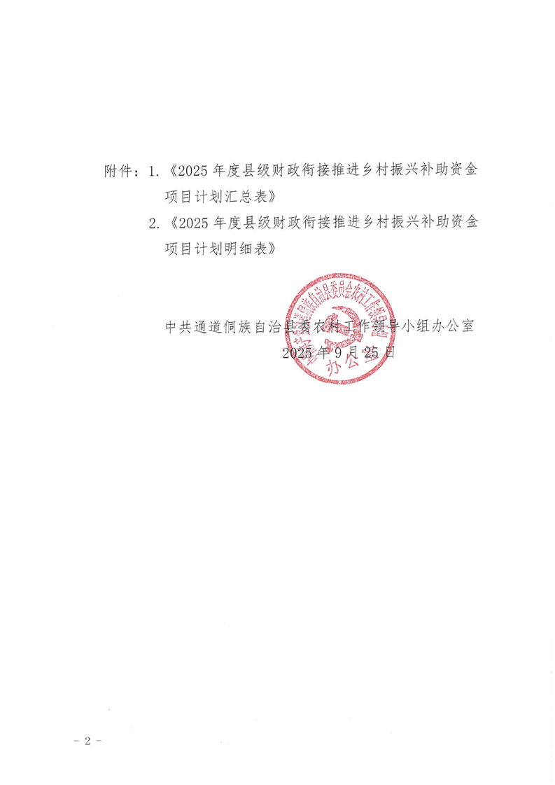 2025年度县级财政衔接推进乡村振兴补助资金项目计划的通知