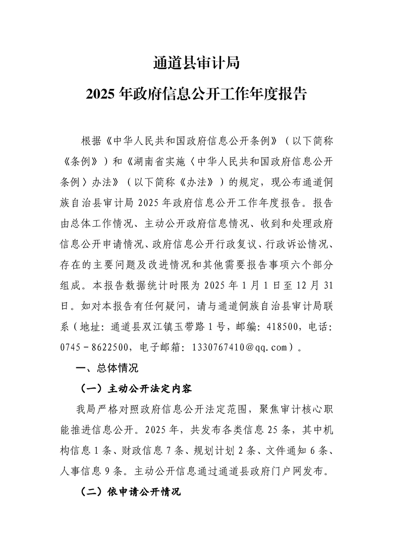 通道县审计局2025年政府信息公开工作年度报告