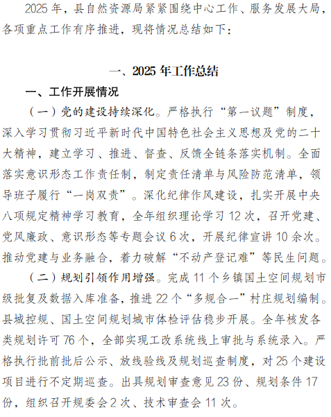 通道侗族自治县自然资源局2025年工作总结及2026年工作计划