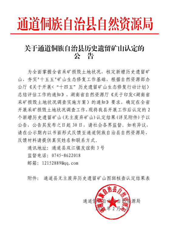 关于通道侗族自治县历史遗留矿山认定的公告