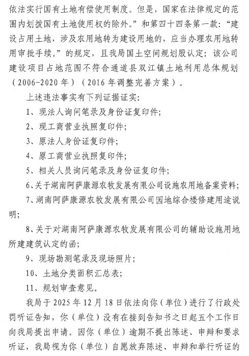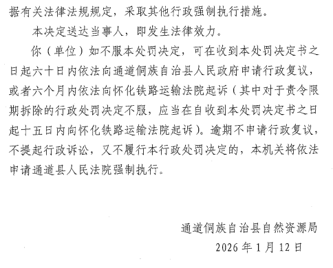 湖南省通道侗族自治县自然资源局行政处罚决定书通自然资罚决字〔2026〕第01号