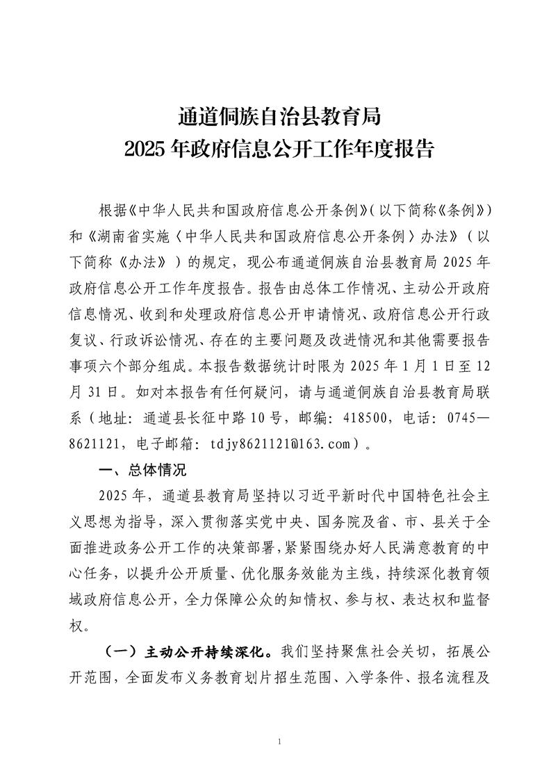 通道侗族自治县教育局2025年政府信息公开工作年度报告