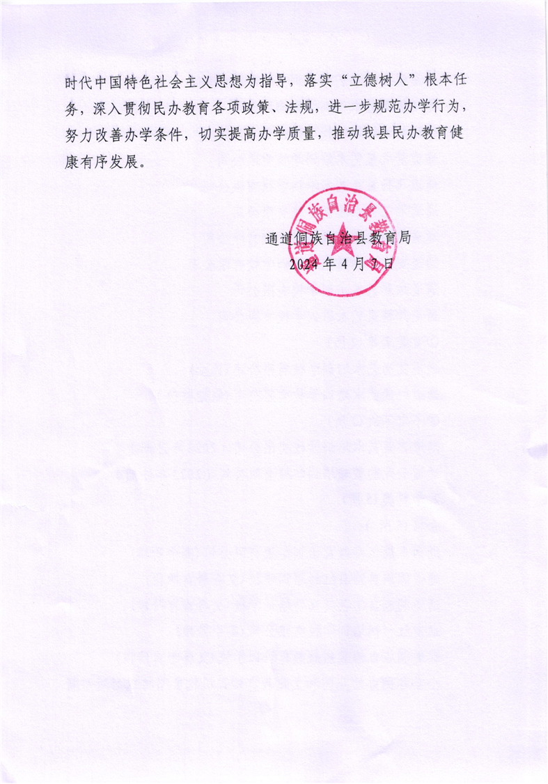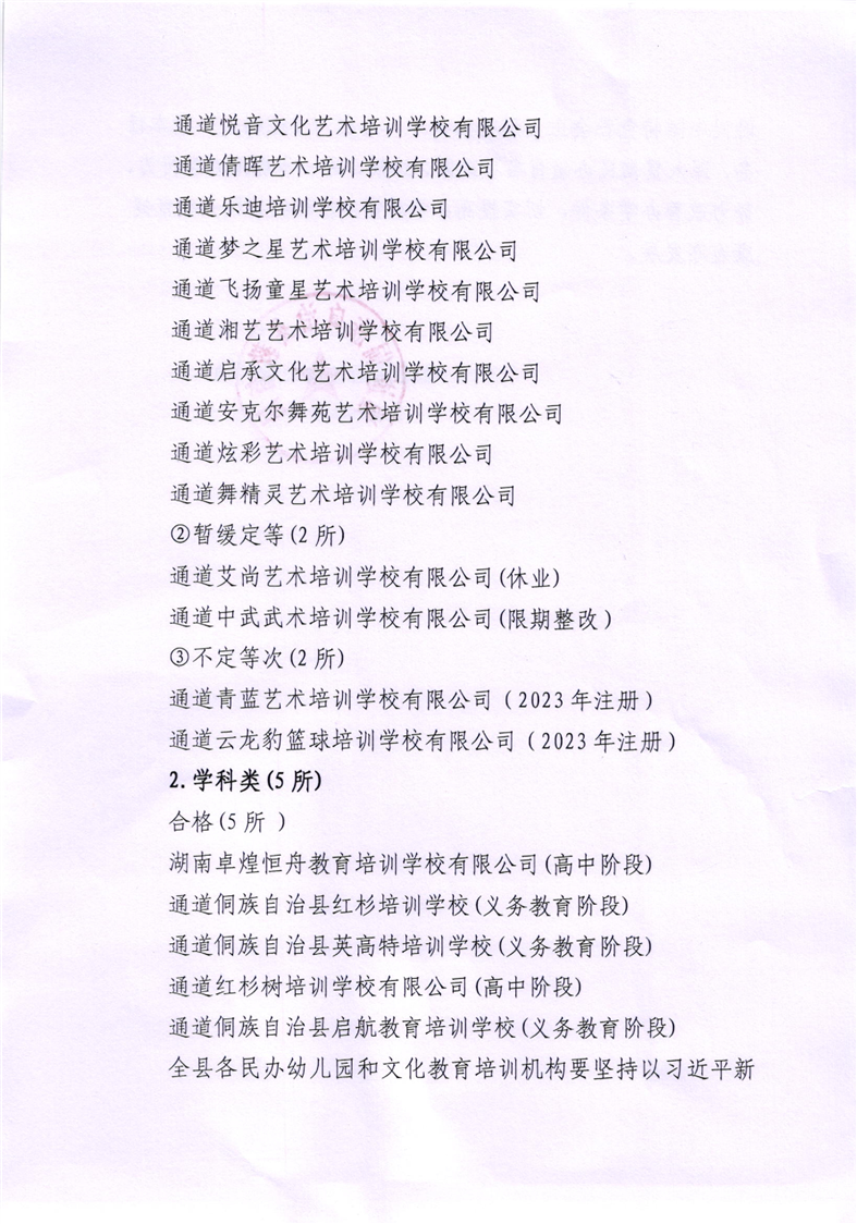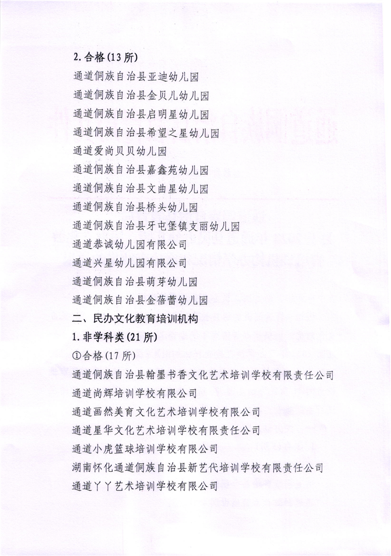 关于2023年通道县民办幼儿园、民办文化教育培训机构办学情况年度检查结果的通报
