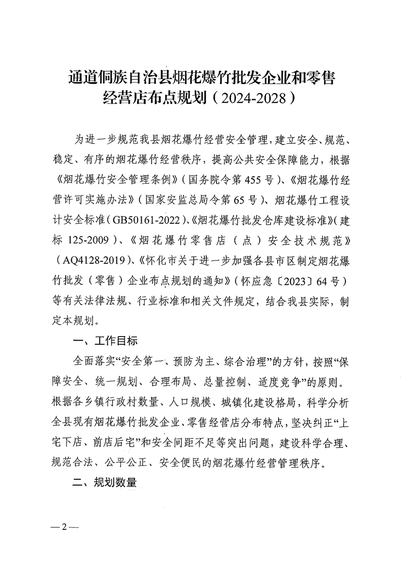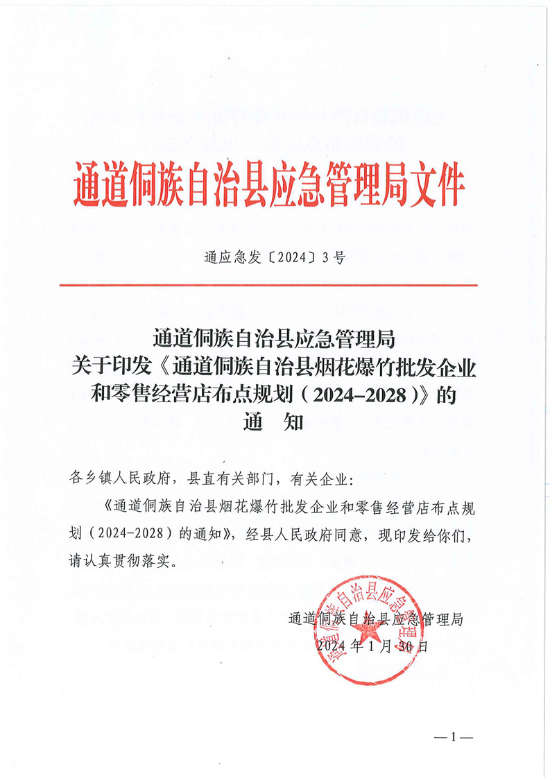 通应急发〔2024〕3号 关于印发《通道侗族自治县烟花爆竹批发企业和零售经营店布点规划(2024-2028)》的通知