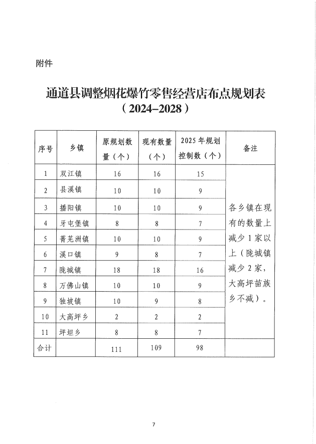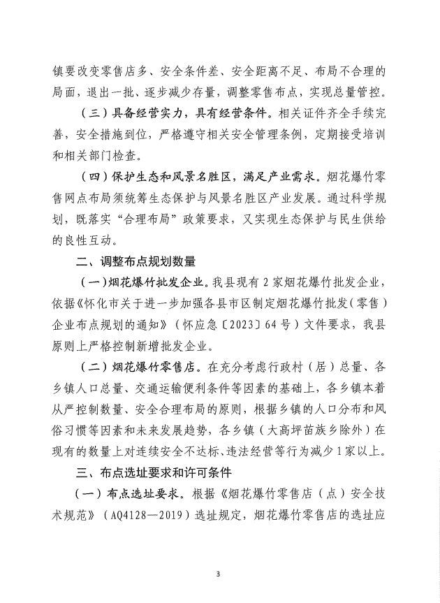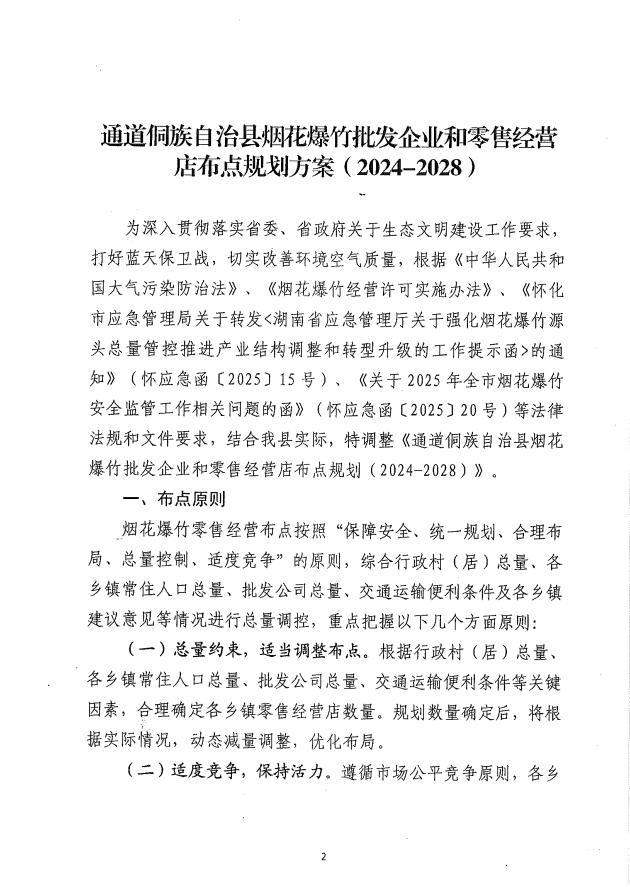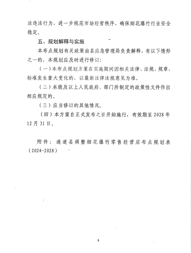 关于调整《通道侗族自治县烟花爆竹批发企业和零售经营店布点规划方案(2024-2028)》的通知