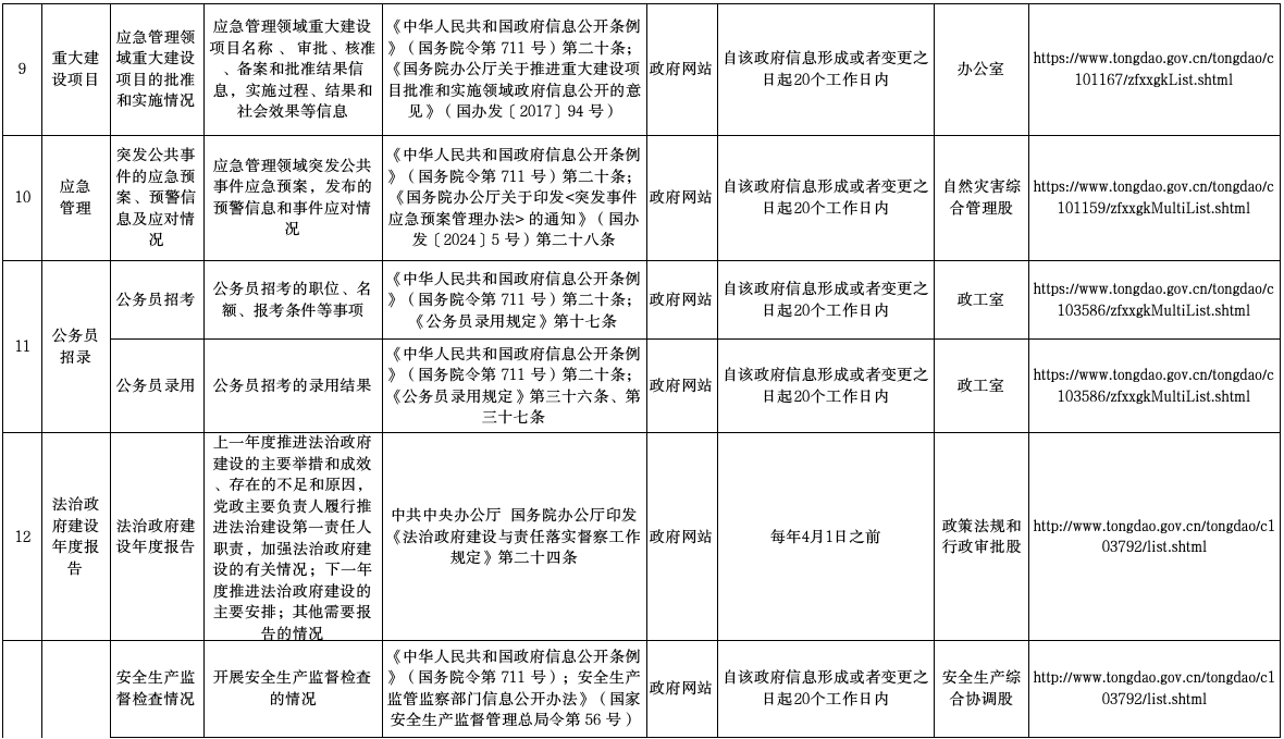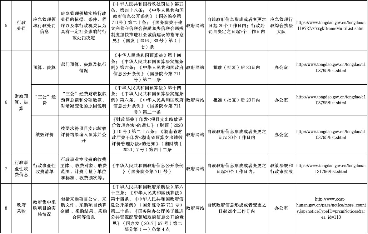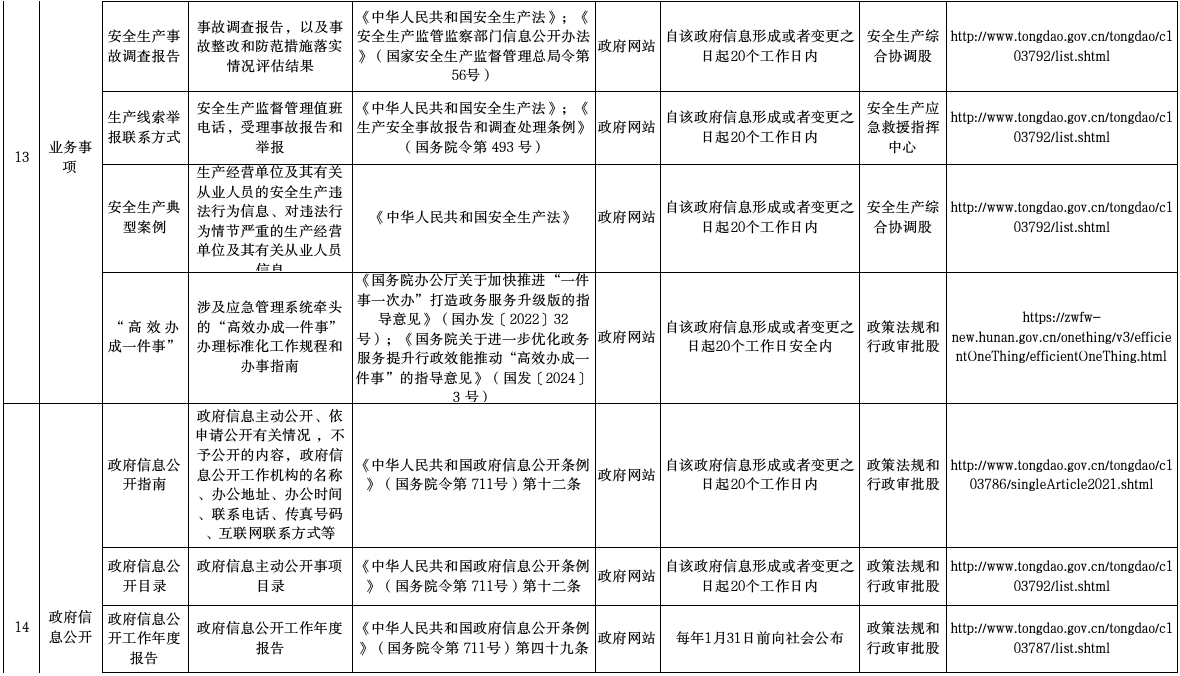 通道侗族自治县应急管理局政府信息主动公开事项目录