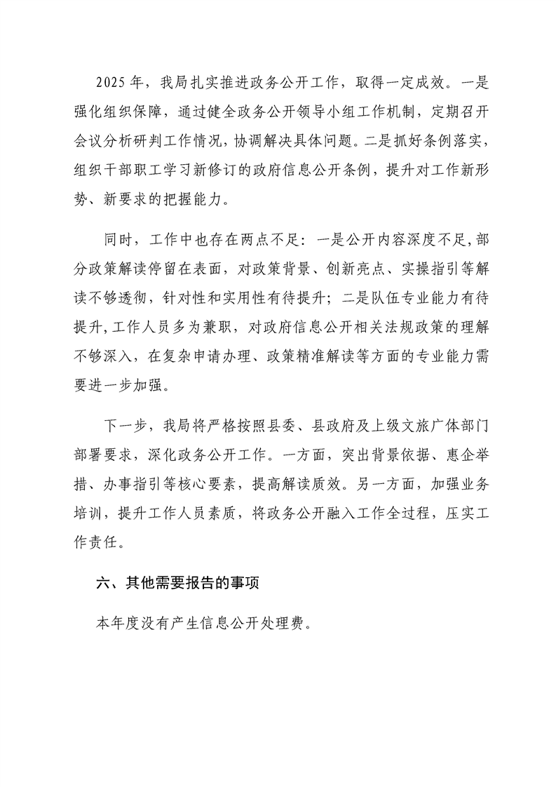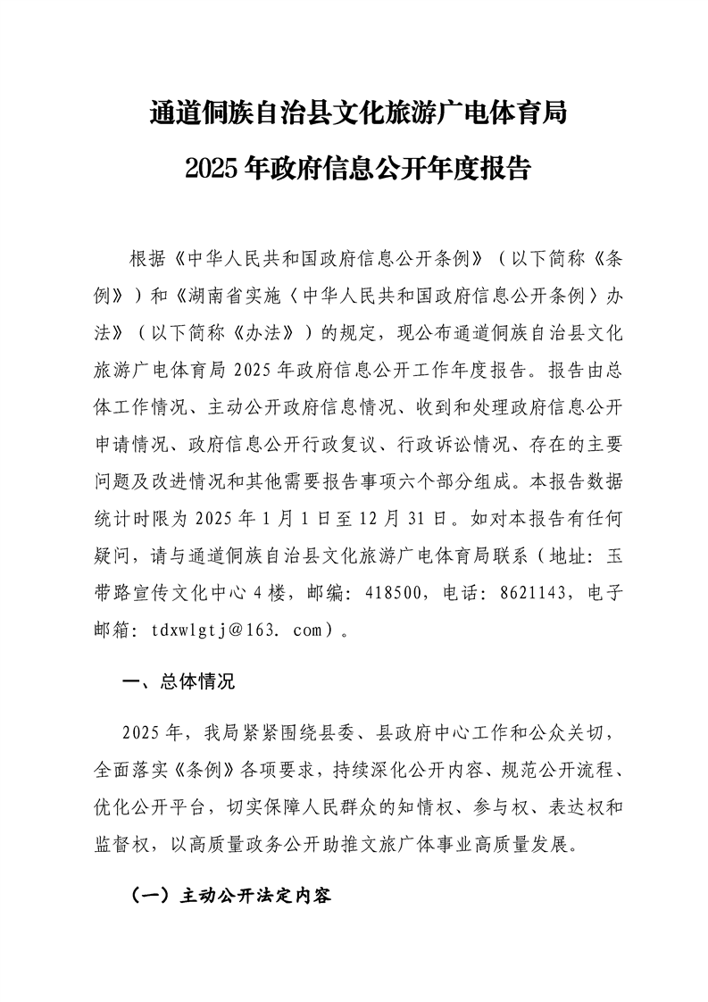 通道侗族自治县文化旅游广电体育局2025年政府信息公开工作年度报告