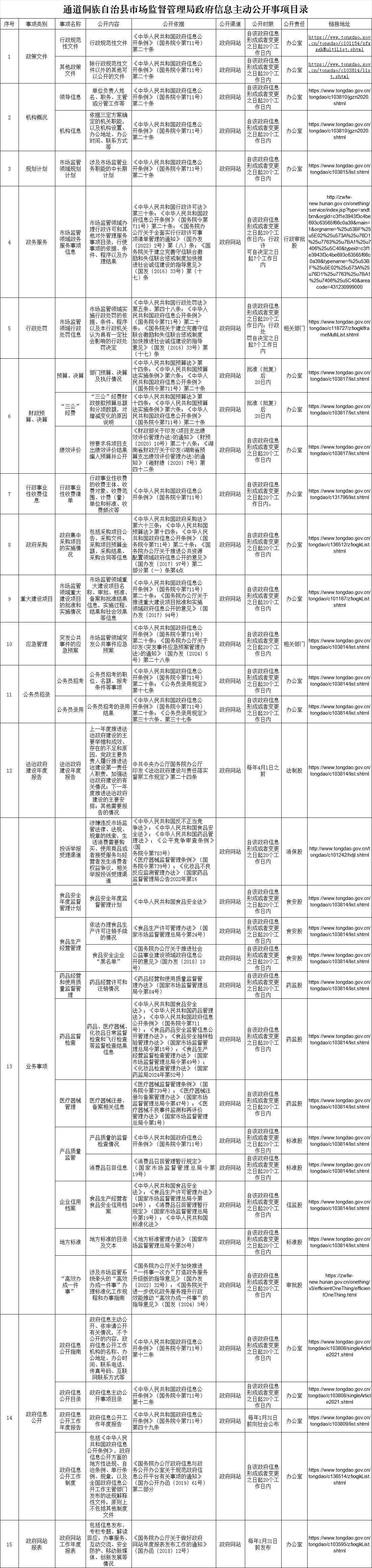 通道侗族自治县市场监督管理局政府信息主动公开事项目录