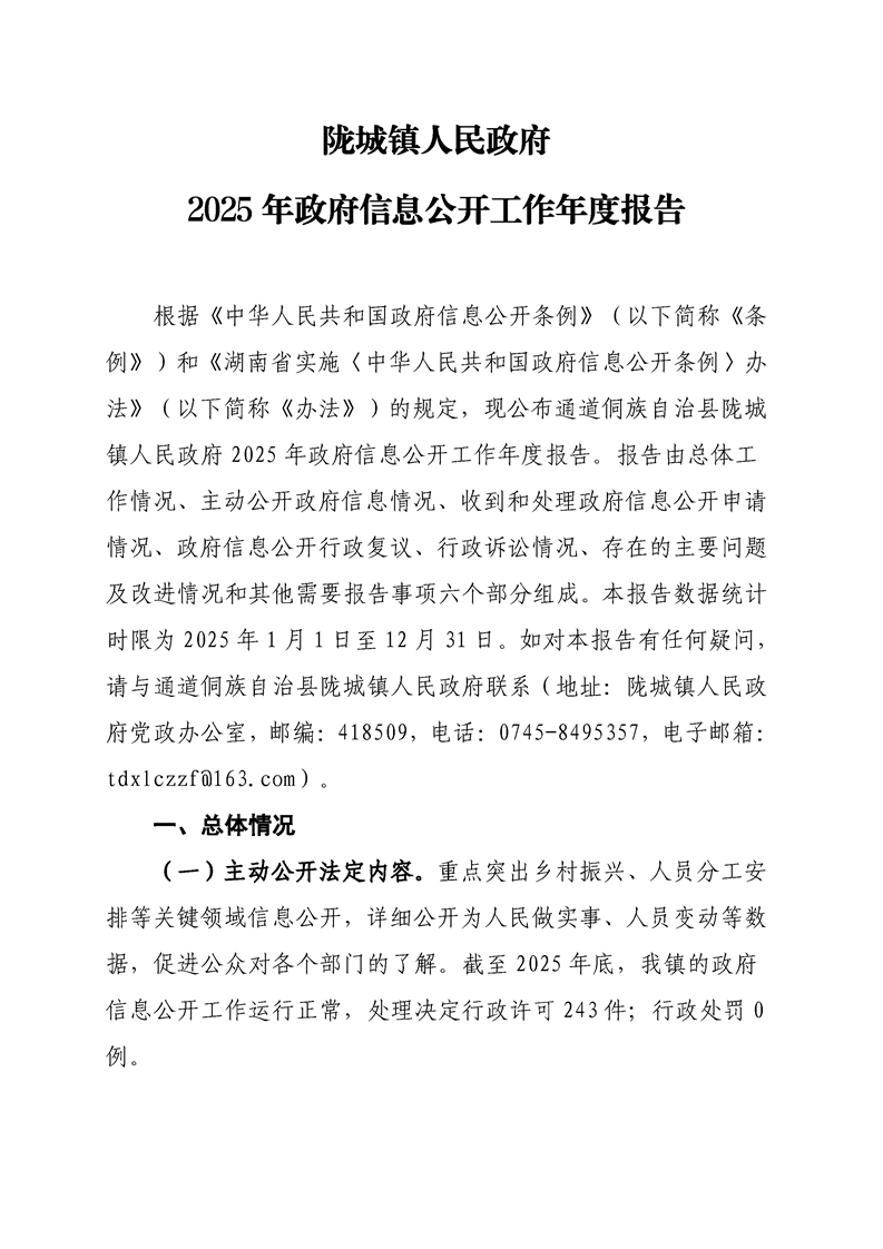 陇城镇人民政府2025年政府信息公开工作年度报告