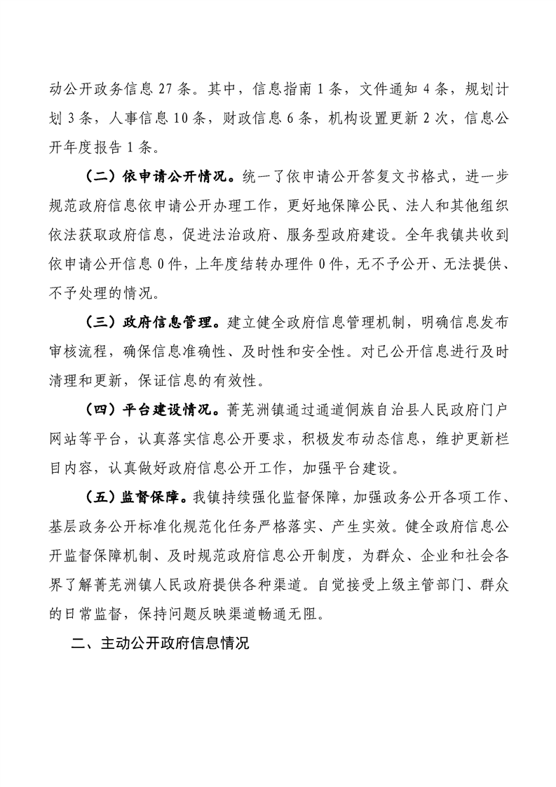 菁芜洲镇人民政府2025年政府信息公开工作年度报告