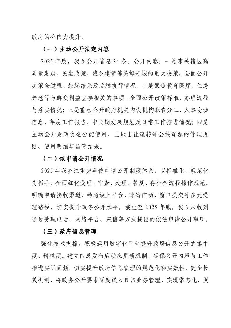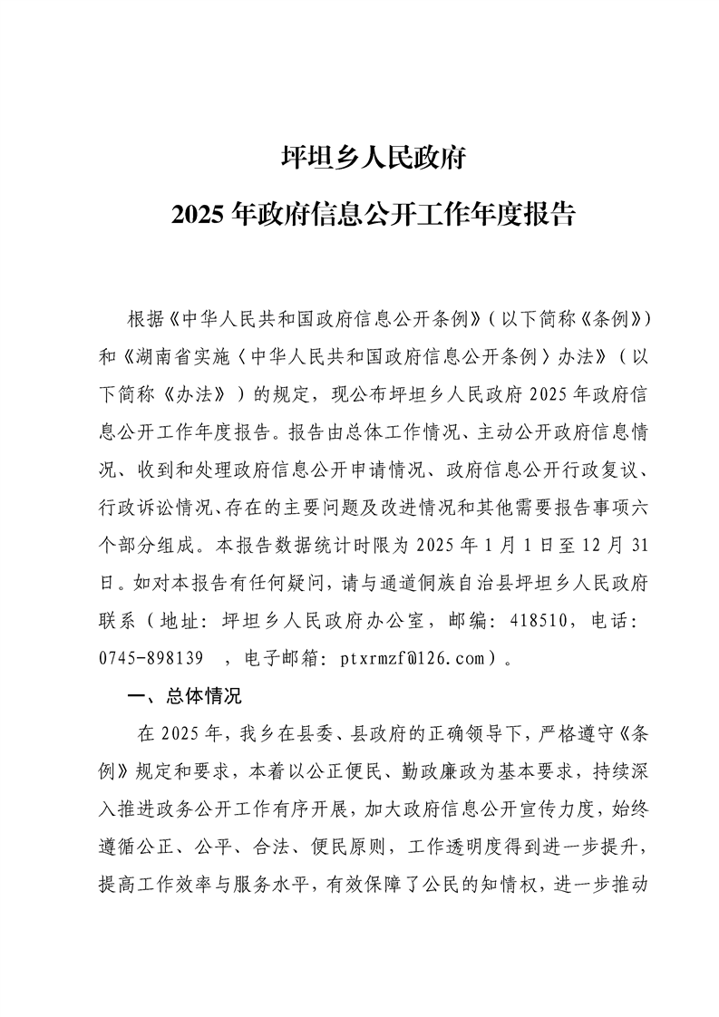 坪坦乡人民政府2025年政府信息公开工作年度报告