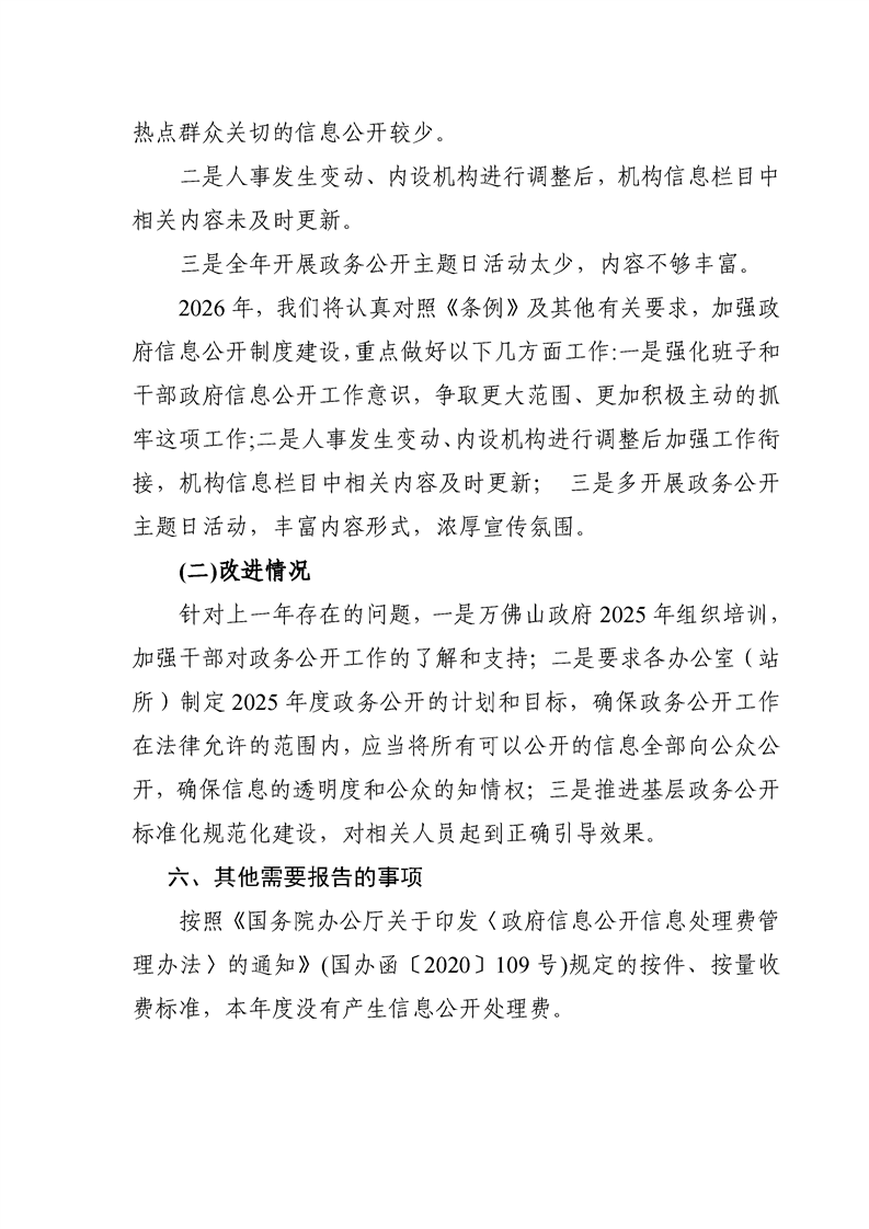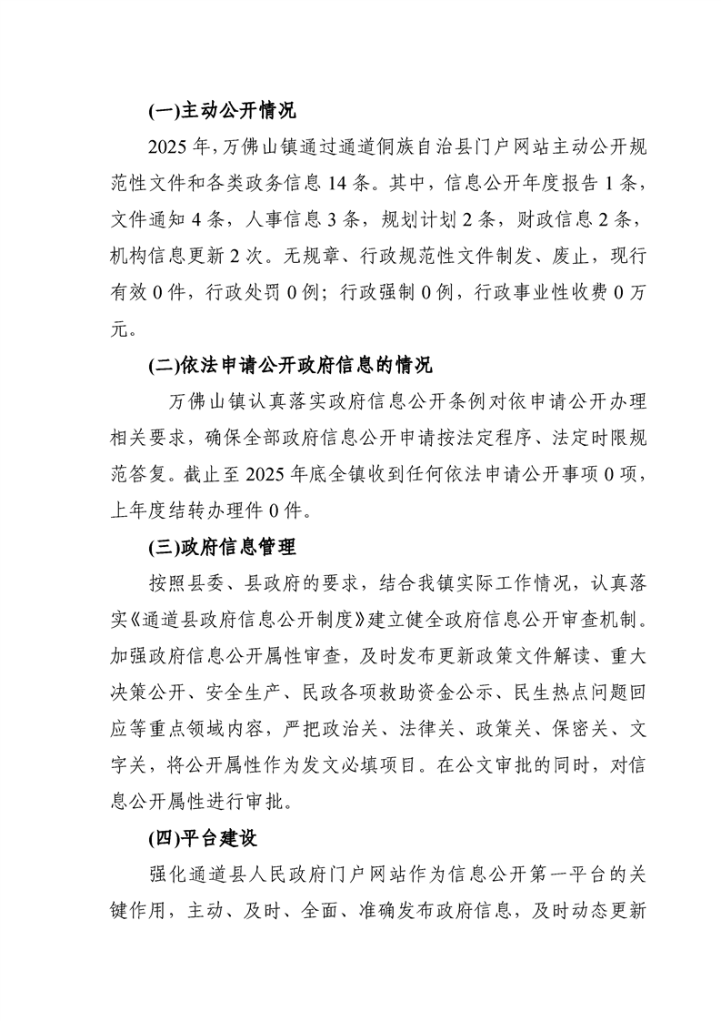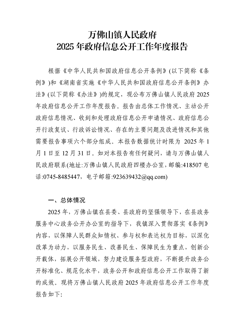 万佛山镇人民政府2025年政府信息公开工作年度报告