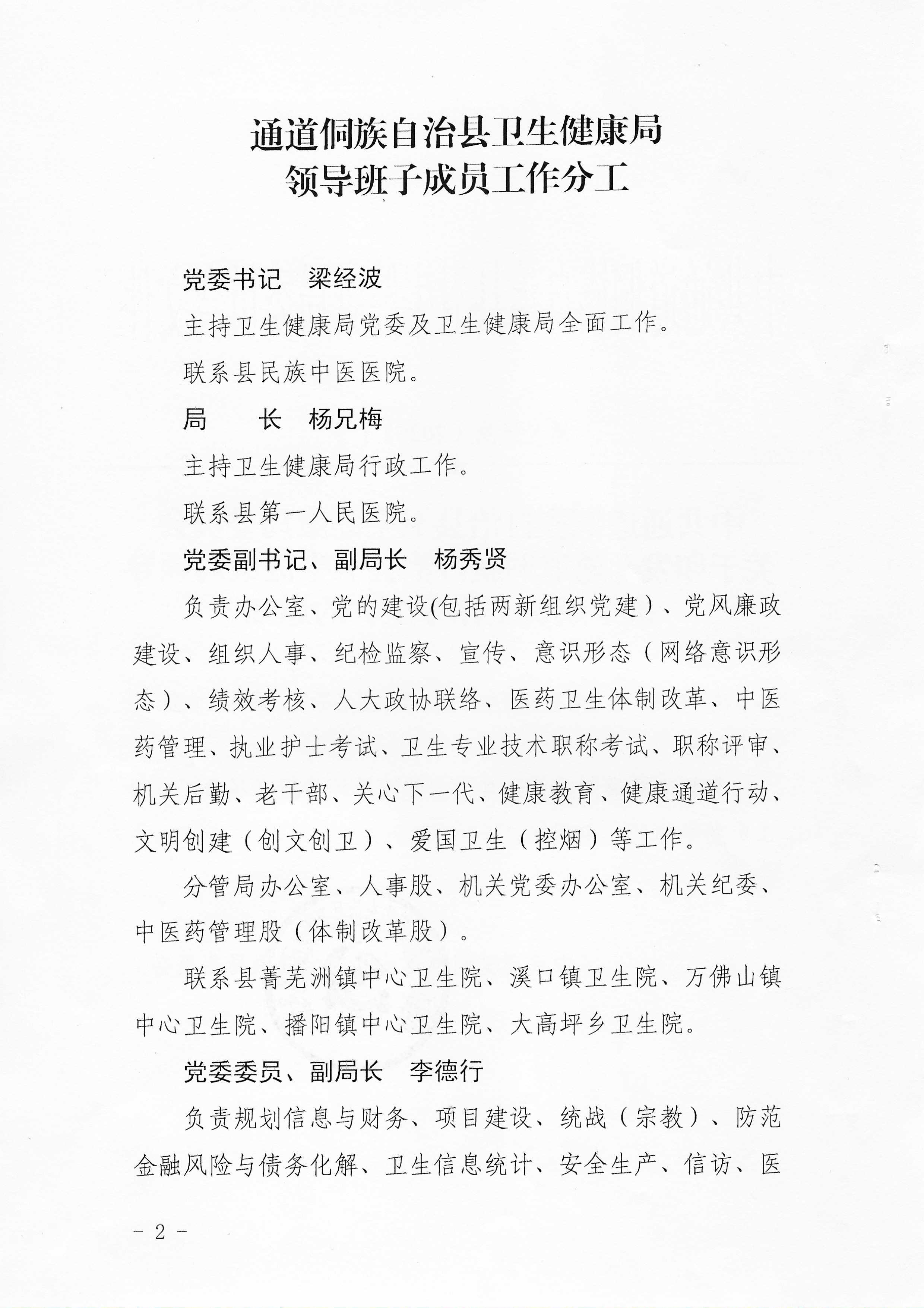 关于印发《通道侗族自治县卫生健康局领导班子成员工作分工》的通知