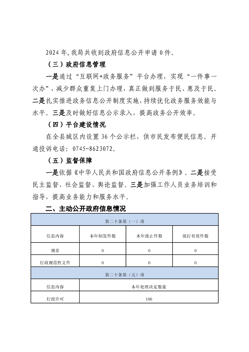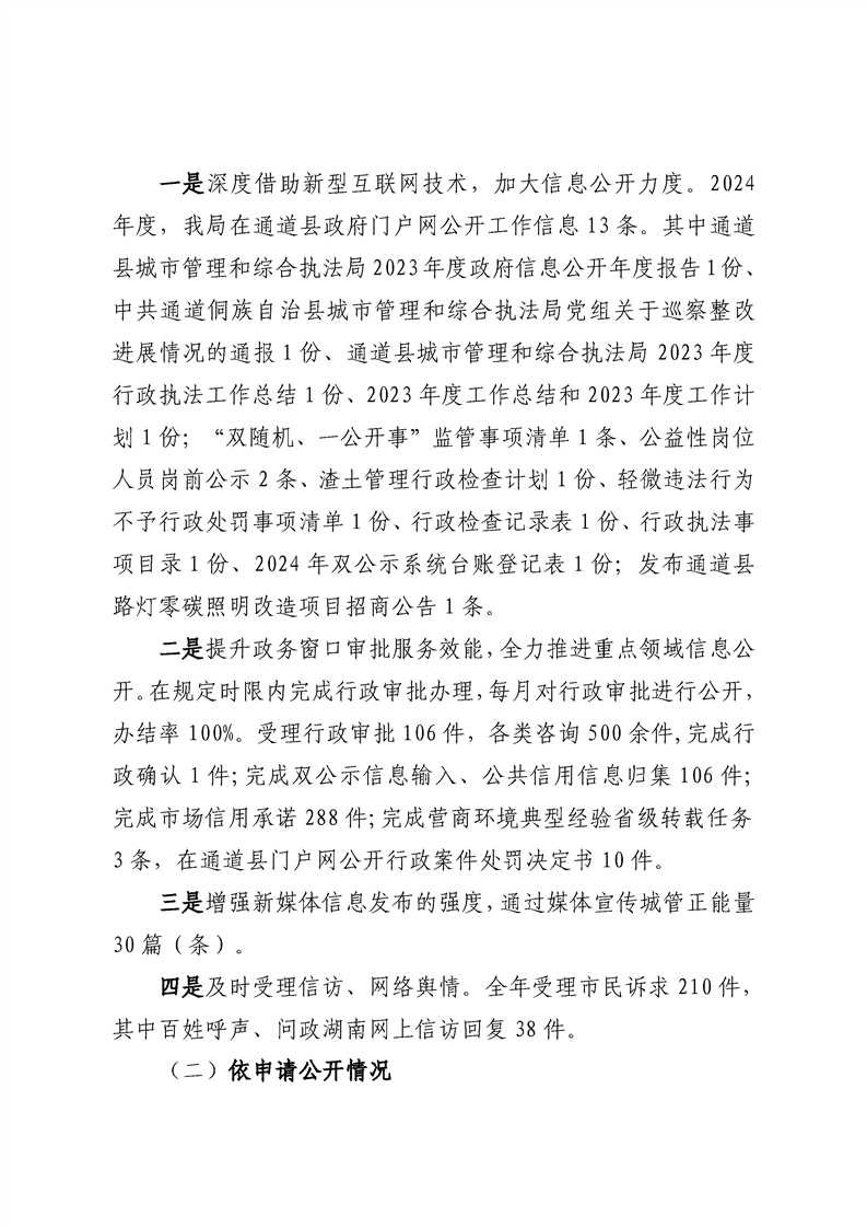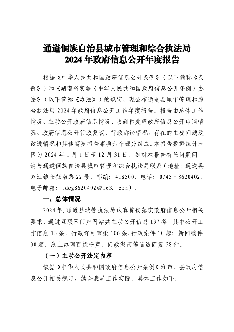 通道侗族自治县城市管理和综合执法局2024年政府信息公开年度报告