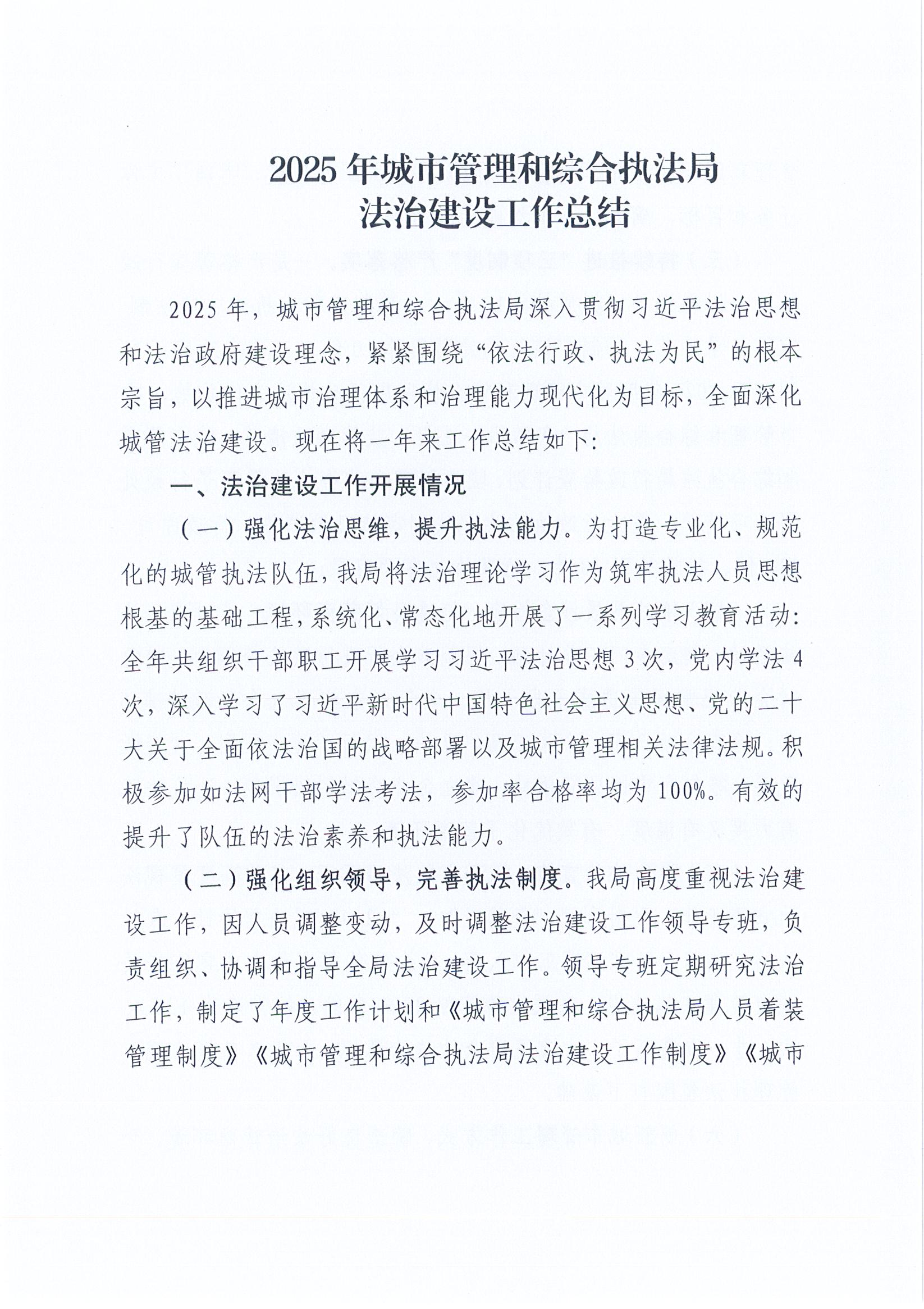 2025年通道县城市管理和综合执法局法治建设工作总结