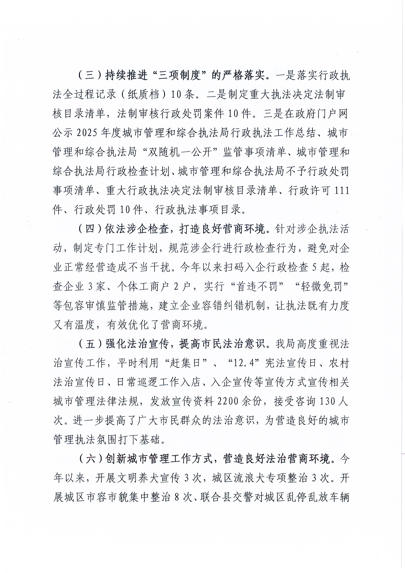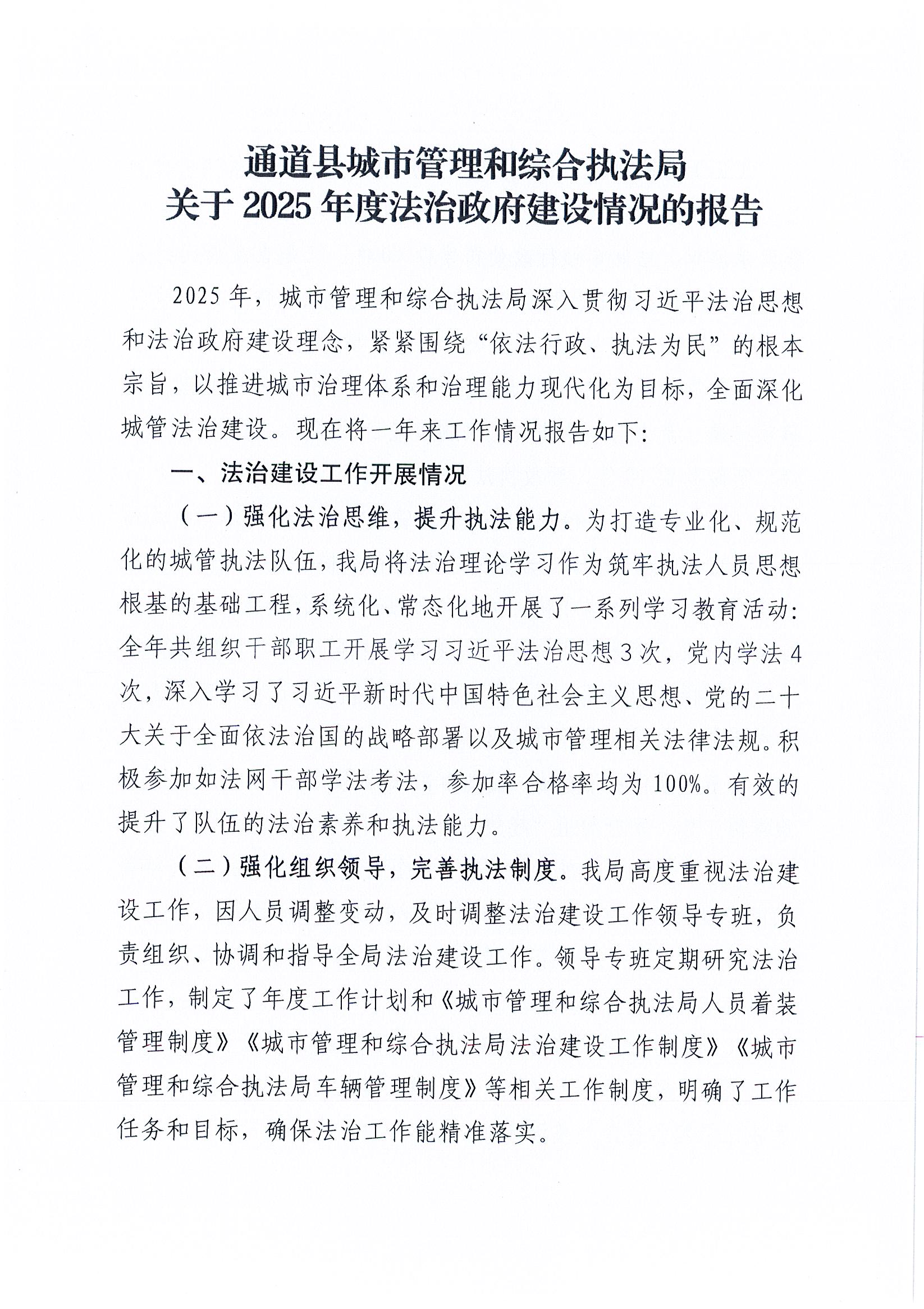 通道侗族自治县城市管理和综合执法局关于2025年度法治政府建设情况的报告