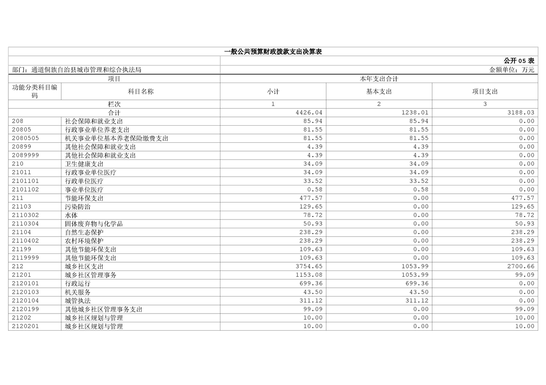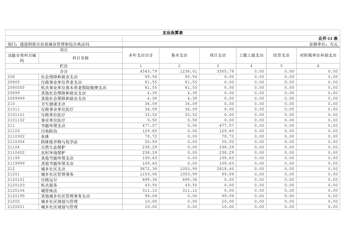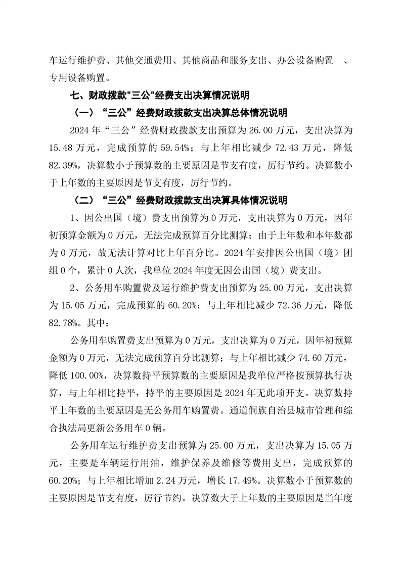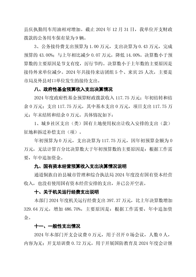 通道侗族自治县城市管理和综合执法局2024年部门决算公开说明