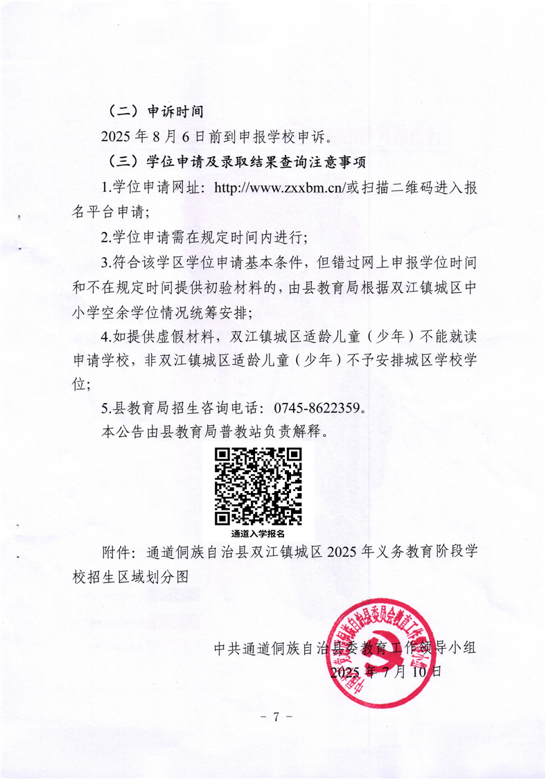 通道侗族自治县双江镇城区2025年义务教育阶段学校划片招生公告