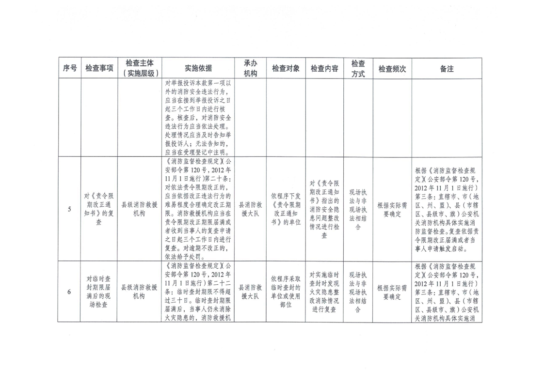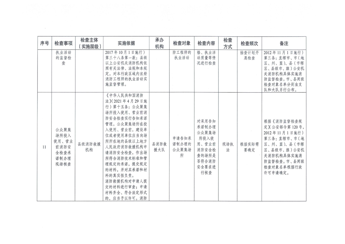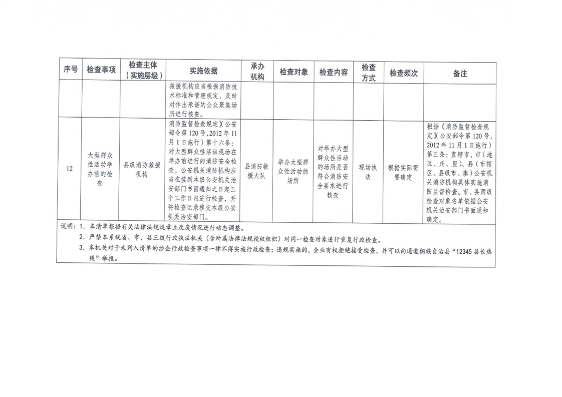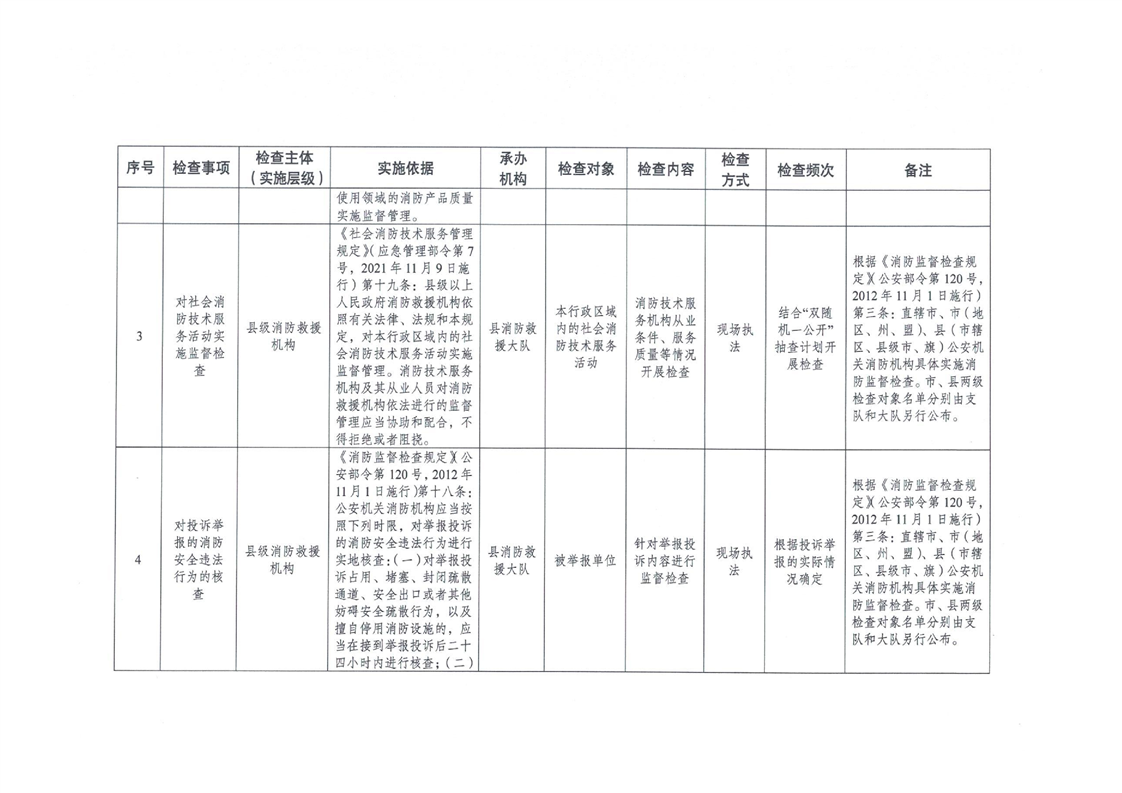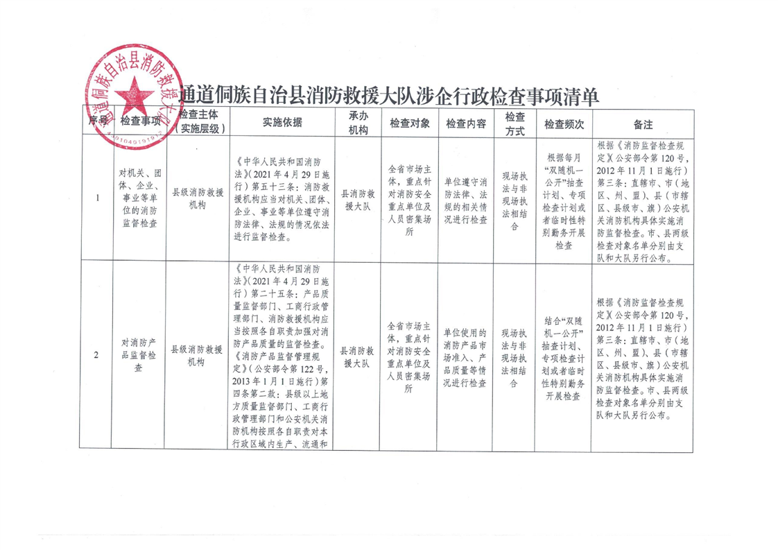 通道侗族自治县消防救援大队涉企行政检查事项清单