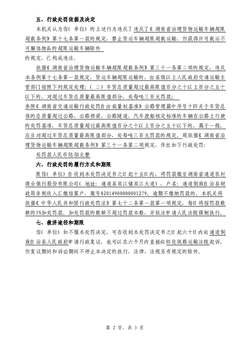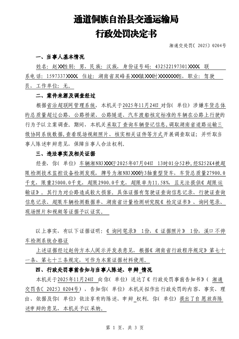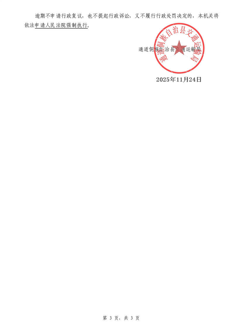 通道侗族自治县交通运输局行政处罚决定书 湘通交处罚〔2025〕0204号