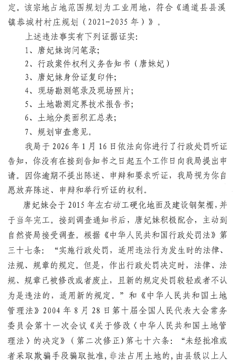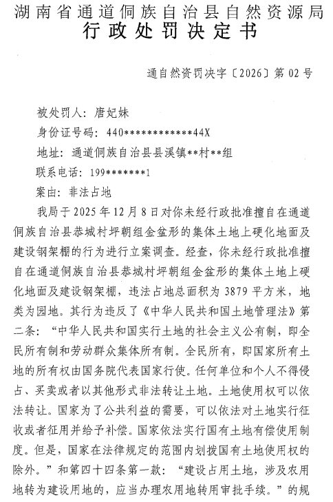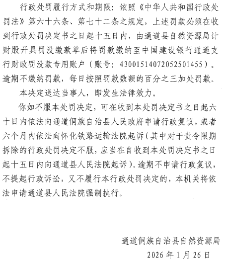 湖南省通道侗族自治县自然资源局行政处罚决定书通自然资罚决字〔2026〕第02号