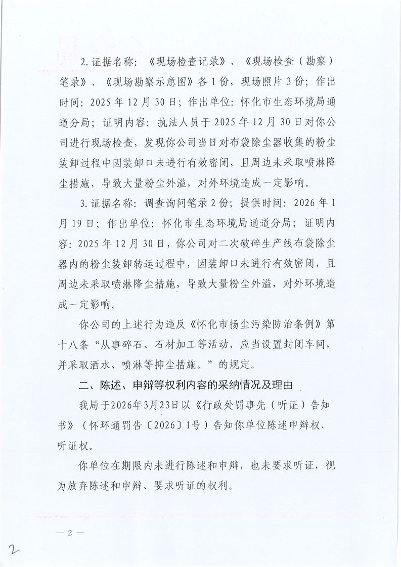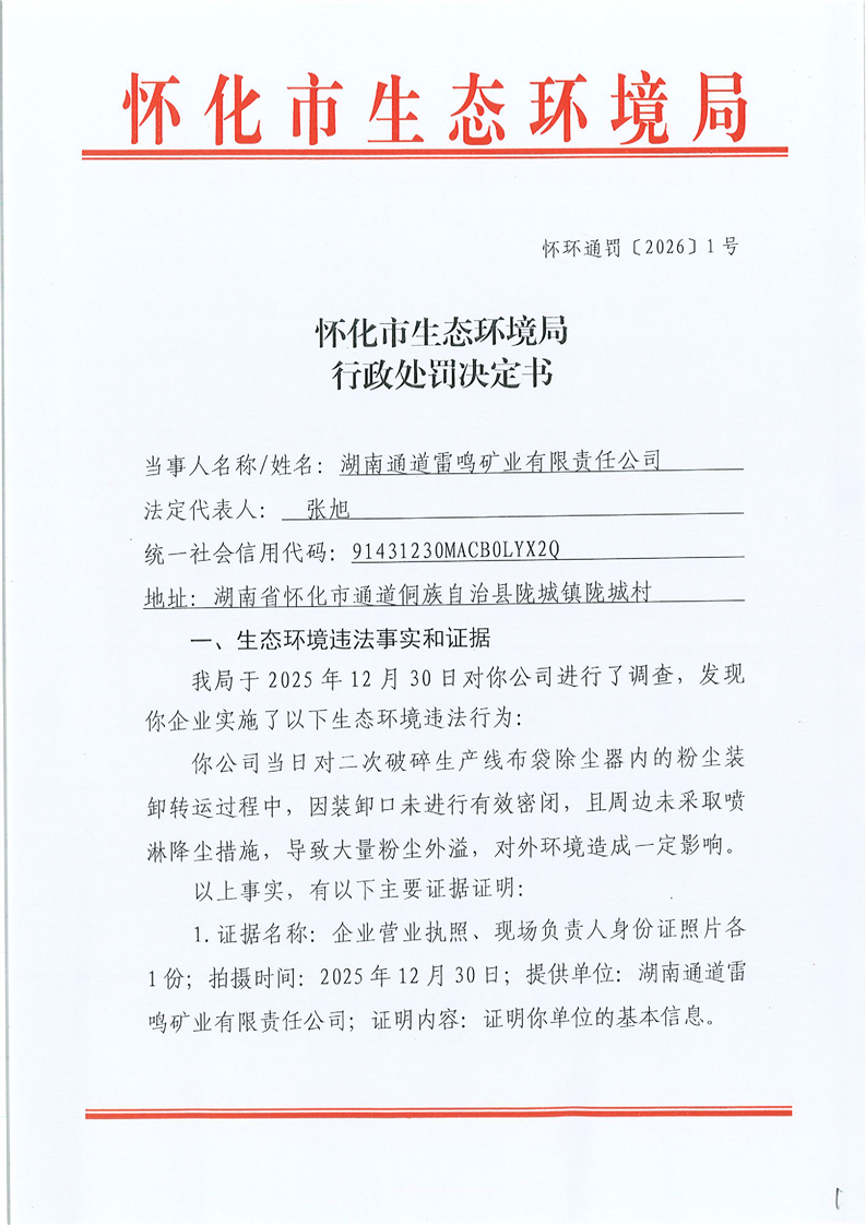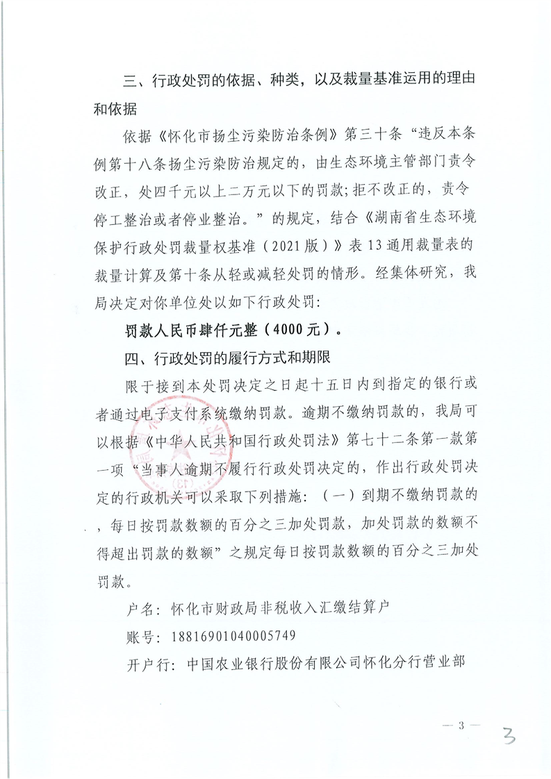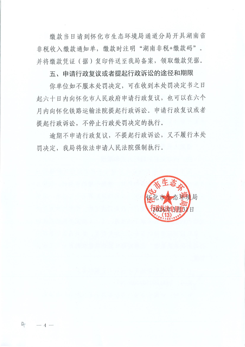 怀化市生态环境局行政处罚决定书