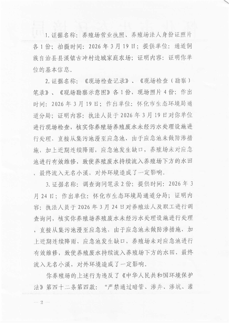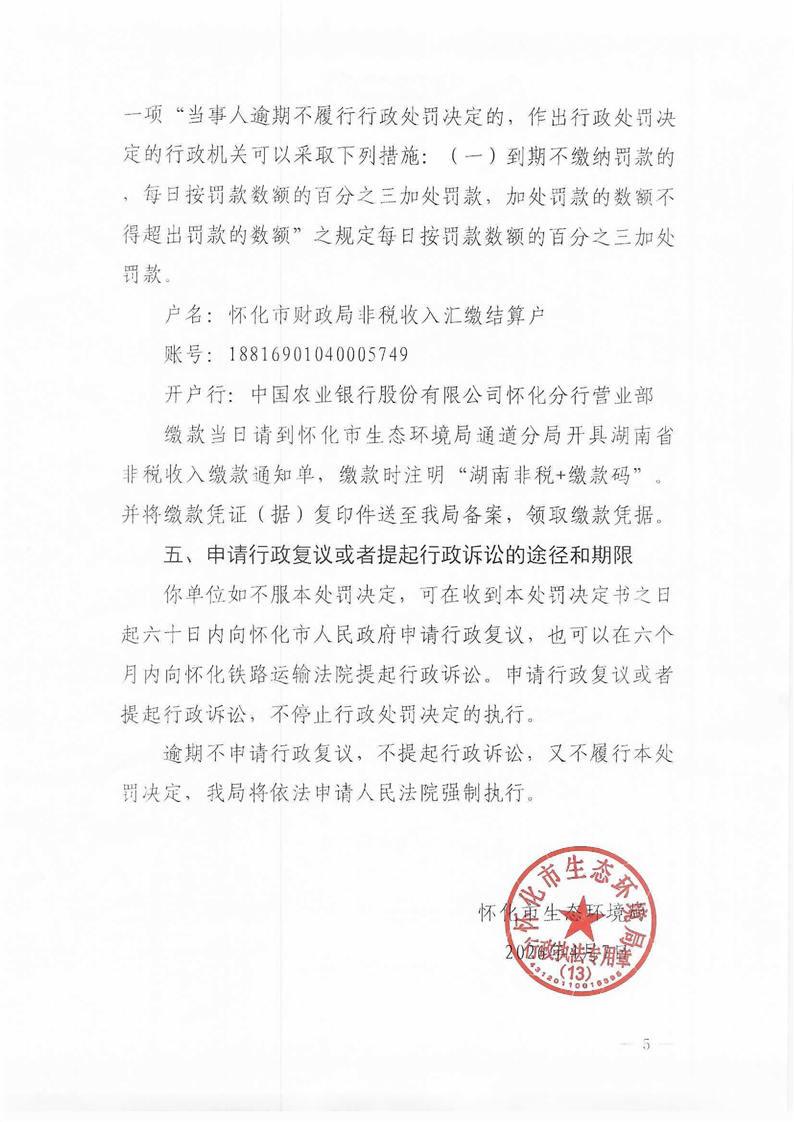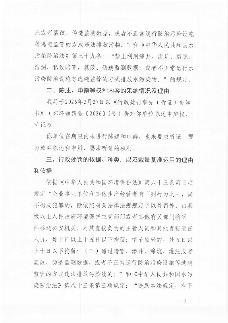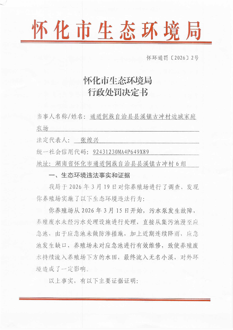 怀化市生态环境局行政处罚决定书 怀环通罚〔2026〕2号