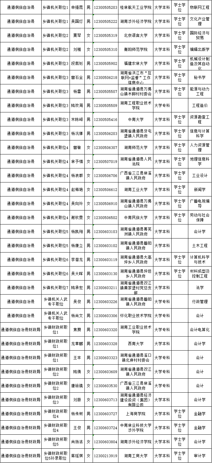 通道县2023年考试录用公务员第一批拟录用人员名单