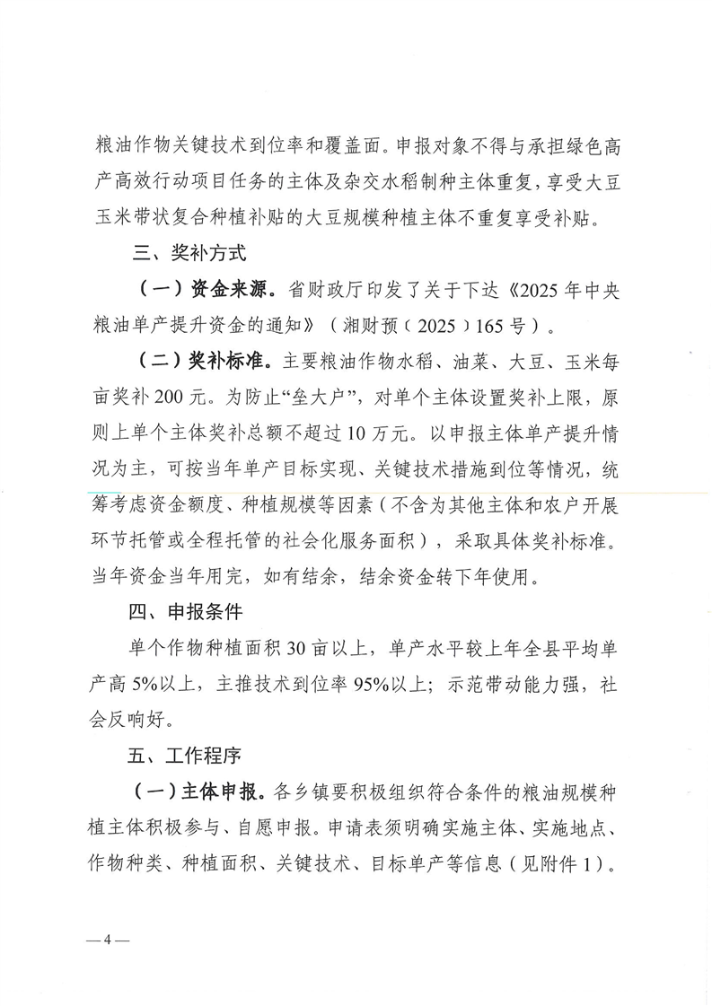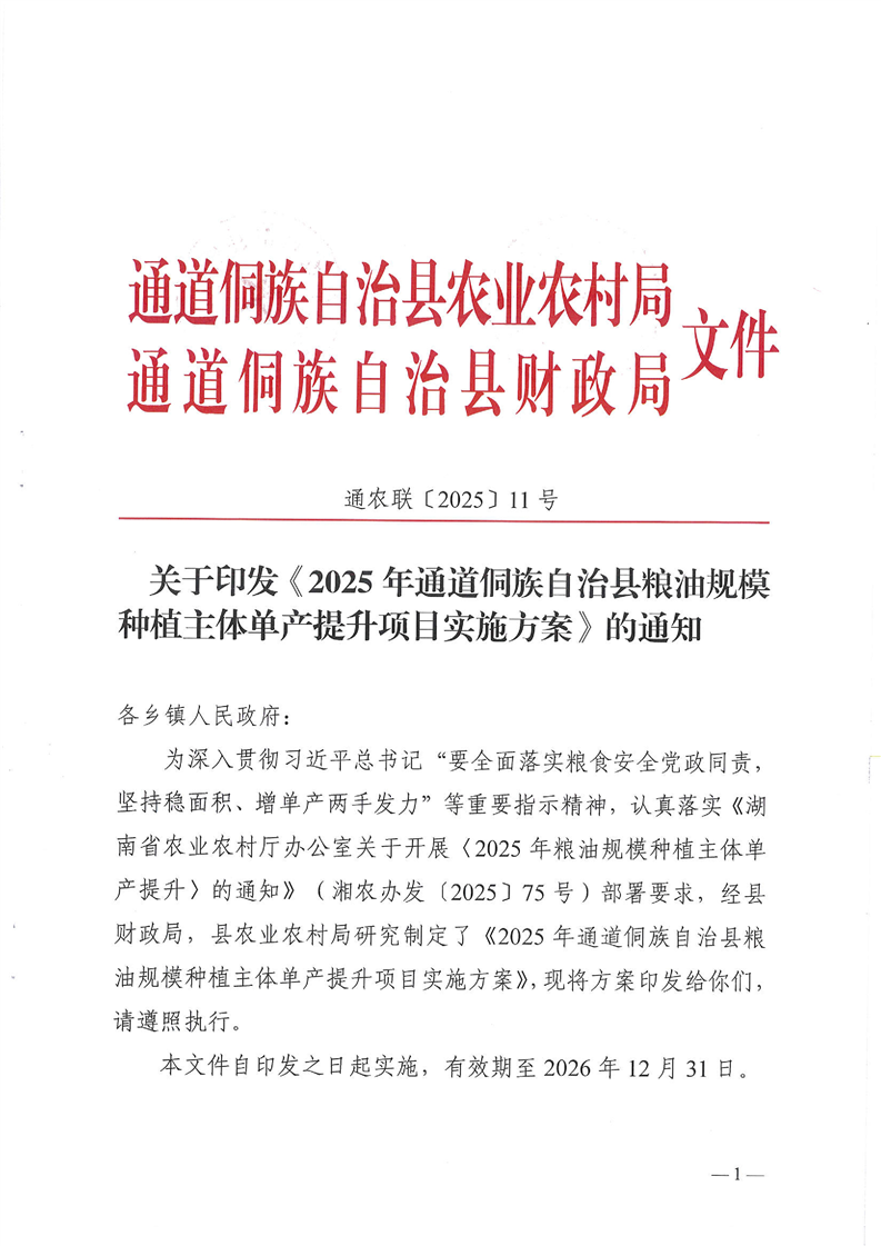 关于印发《2025年通道侗族自治县粮油规模种植主体单产提升项目实施方案》的通知
